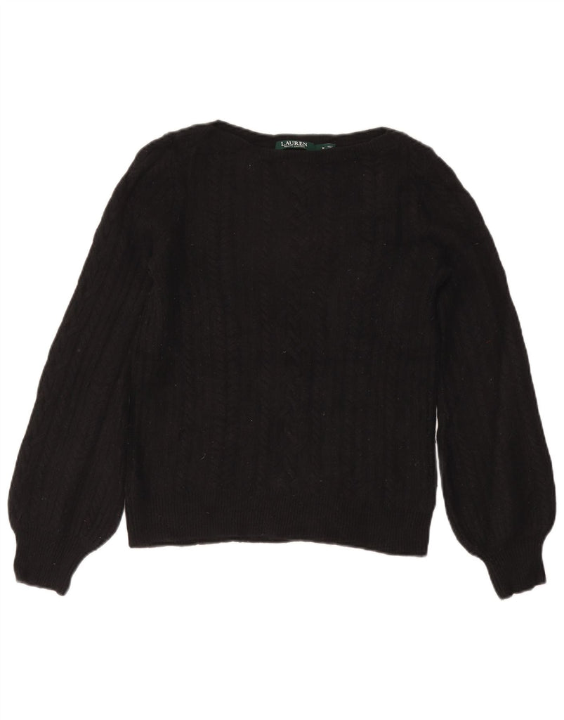 RALPH LAUREN Womens Boat Neck Jumper Sweater UK 14 Medium Black Wool