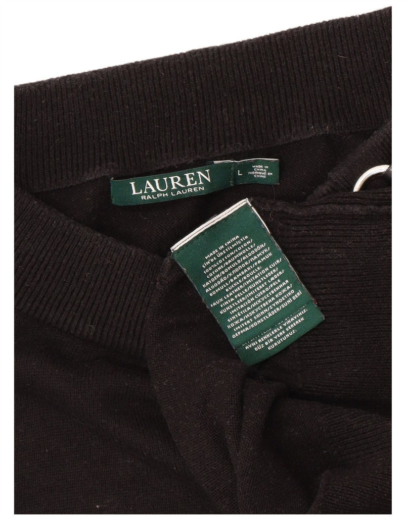 RALPH LAUREN Womens Boat Neck Jumper Sweater UK 16 Large Black Cotton