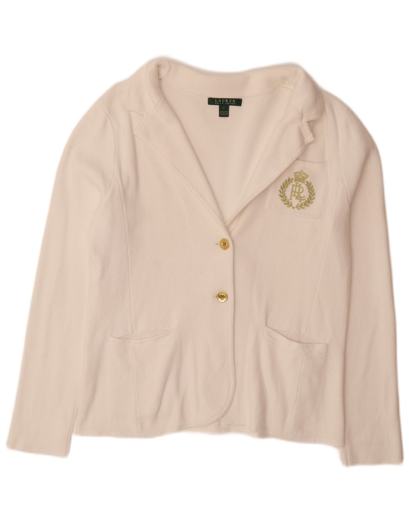 Pulover cardigan pentru femei RALPH LAUREN UK 16 mare bumbac alb
