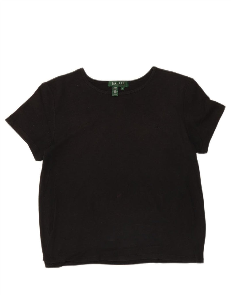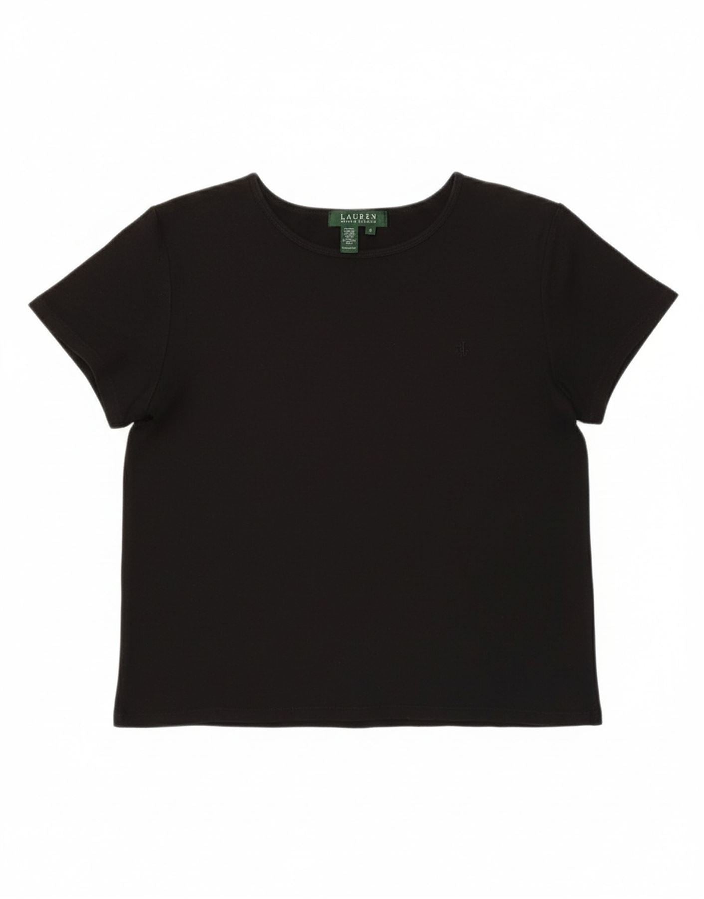 RALPH LAUREN Womens Crop T-Shirt Top UK 10 Small Black Cotton