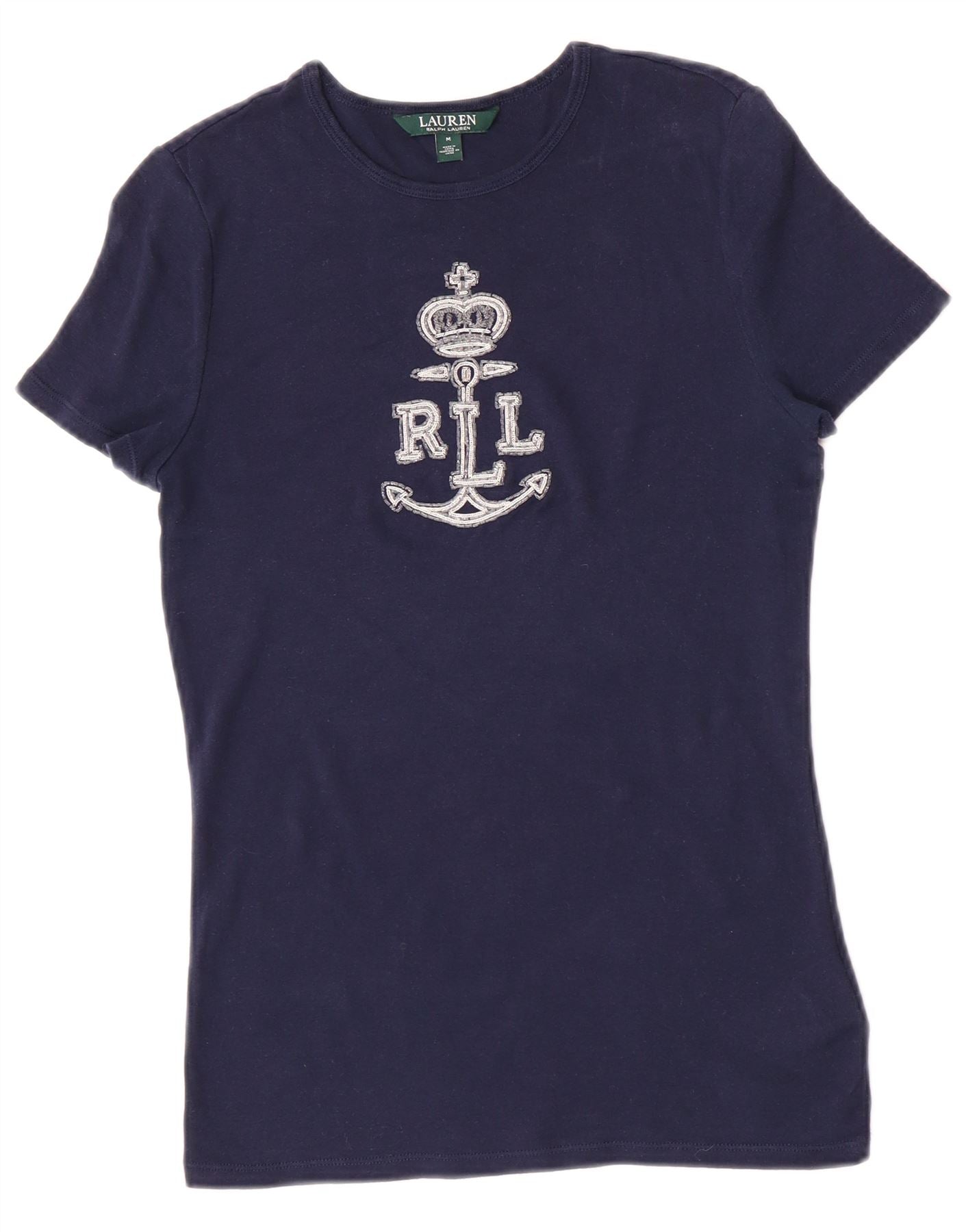 Tricou grafic Ralph Lauren pentru femei Top UK 12 Medium Bleumarin Bumbac