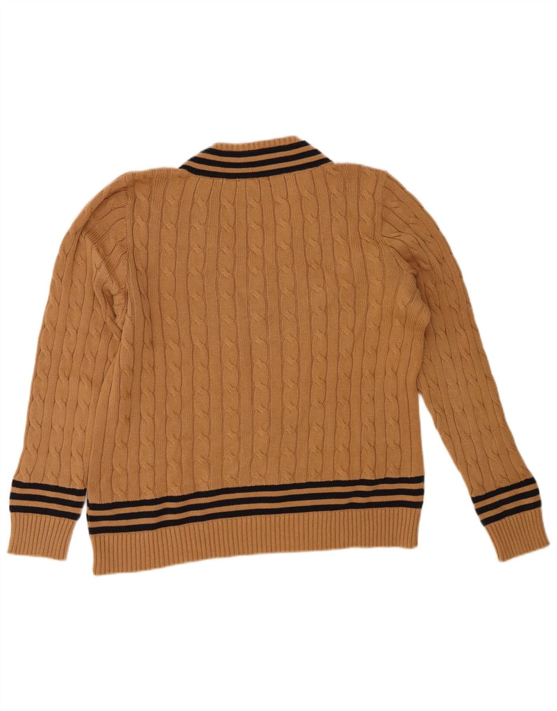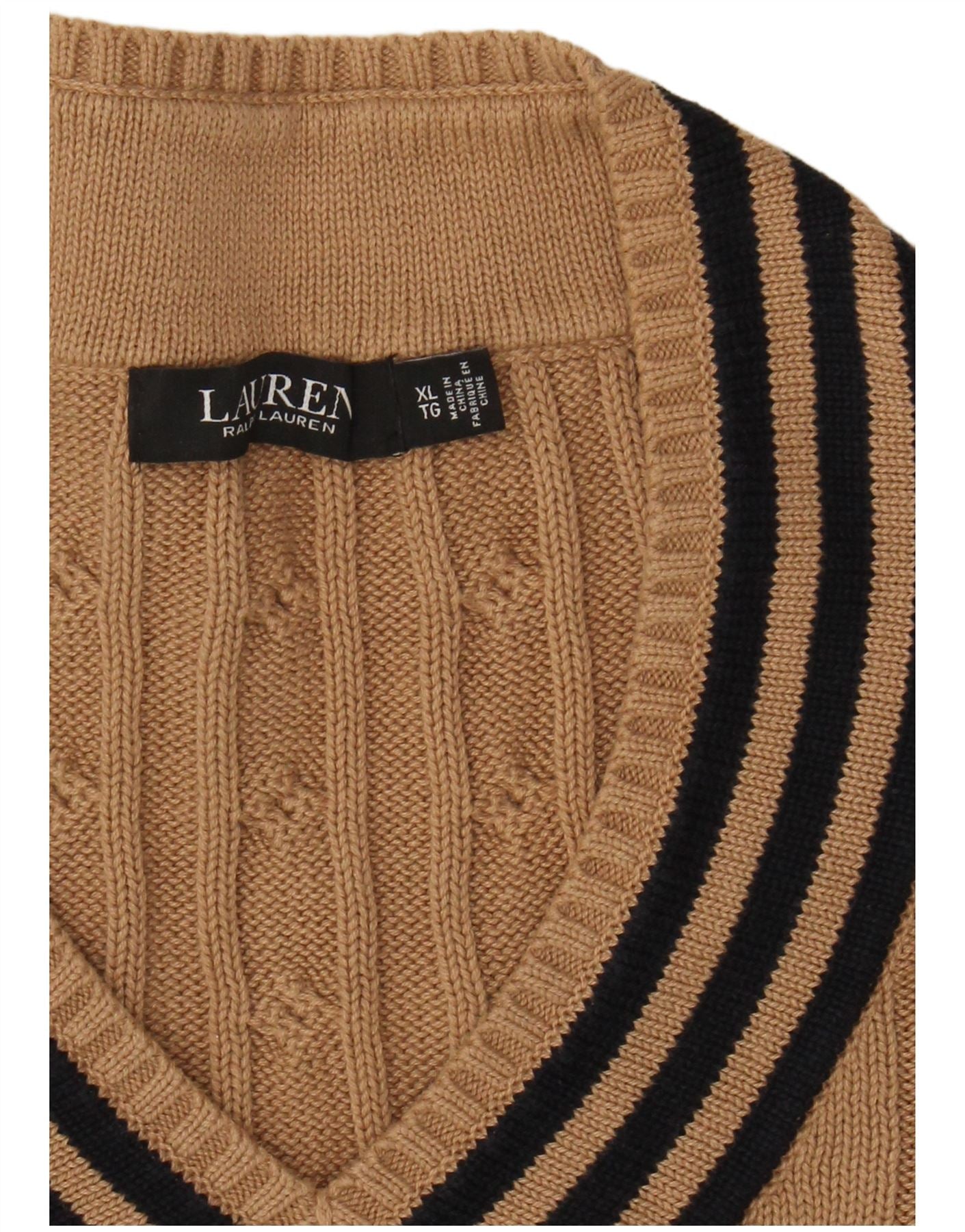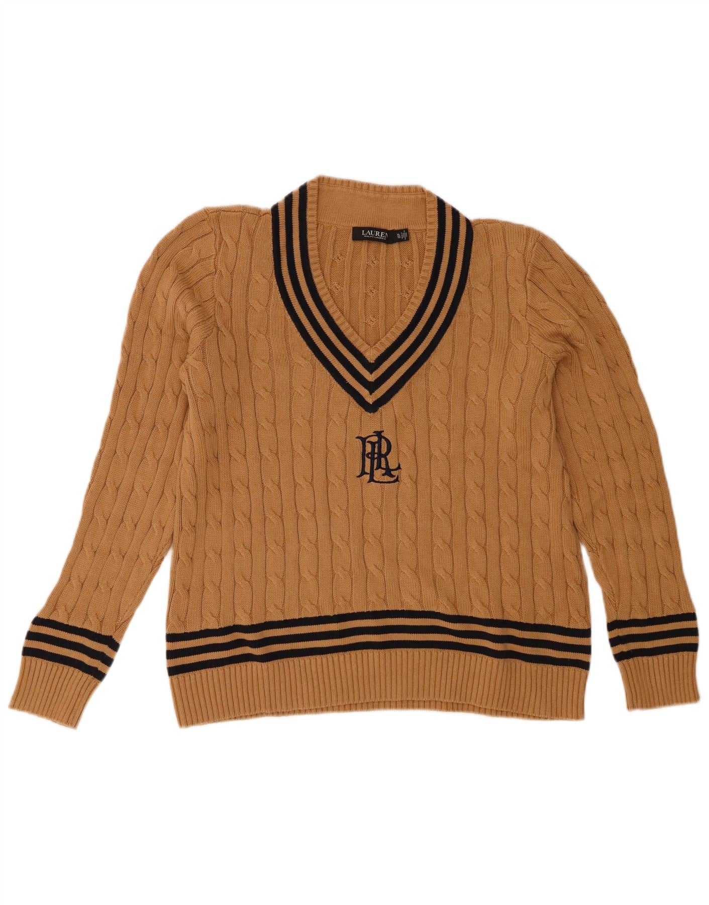 RALPH LAUREN Womens Graphic V-Neck Jumper Sweater UK 18 XL Brown Striped