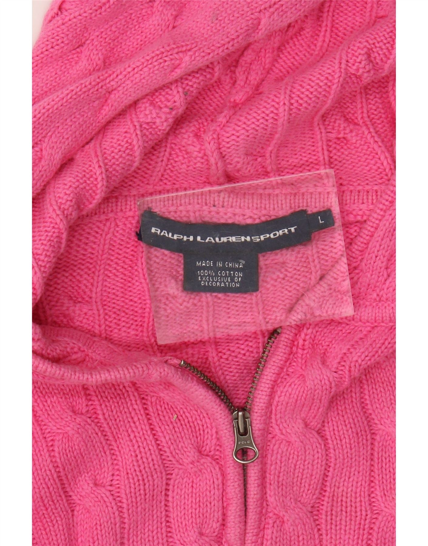 Pulover cardigan cu glugă pentru femei Ralph Lauren UK 16 mare bumbac roz