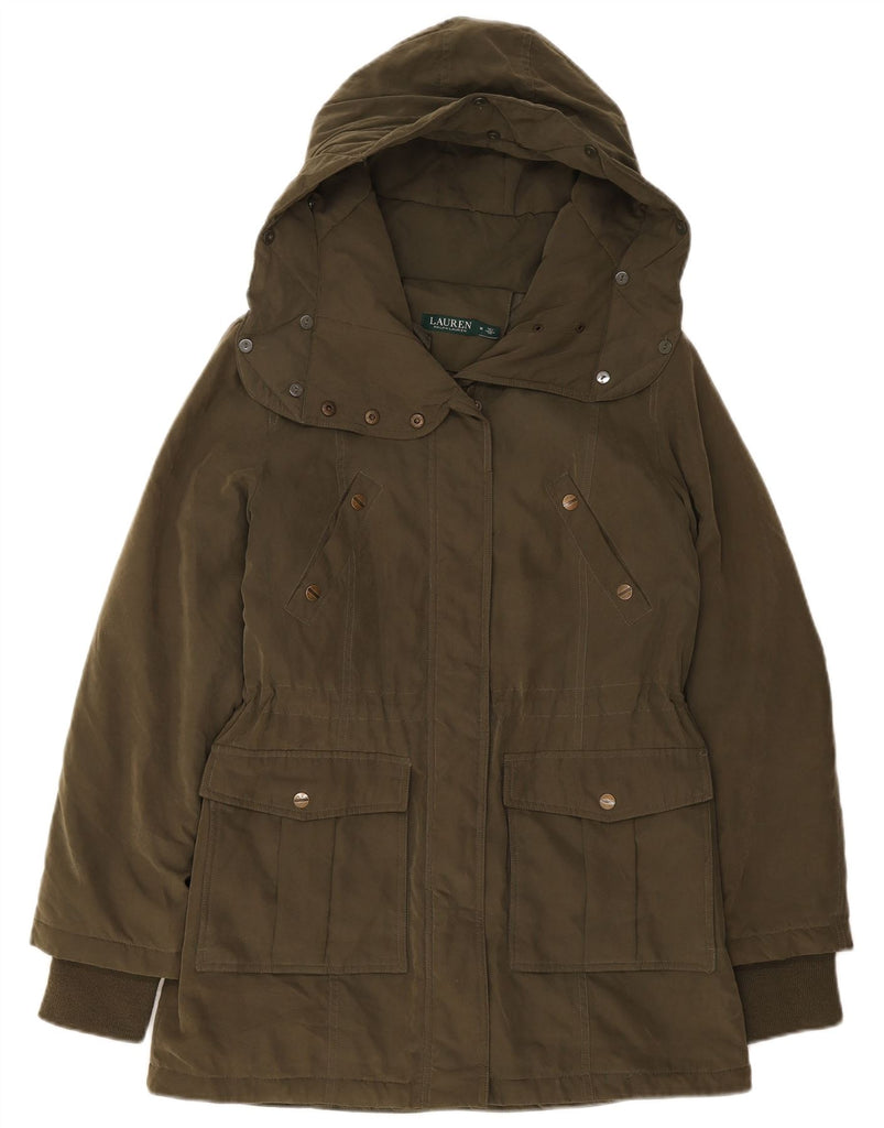 RALPH LAUREN Womens Hooded Padded Jacket UK 14 Medium Khaki Polyester