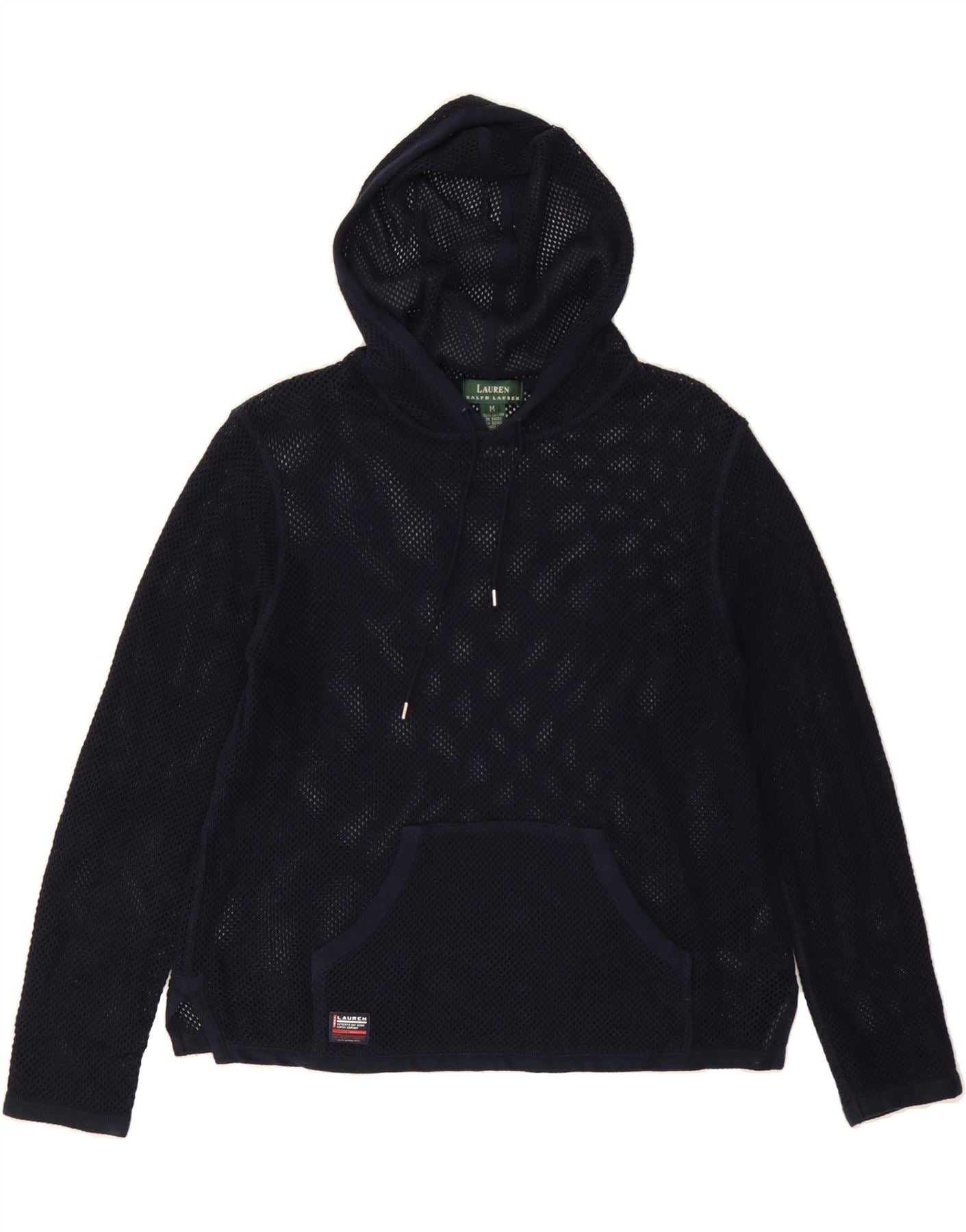 RALPH LAUREN Womens Hoodie Jumper UK 14 Medium Navy Blue Cotton
