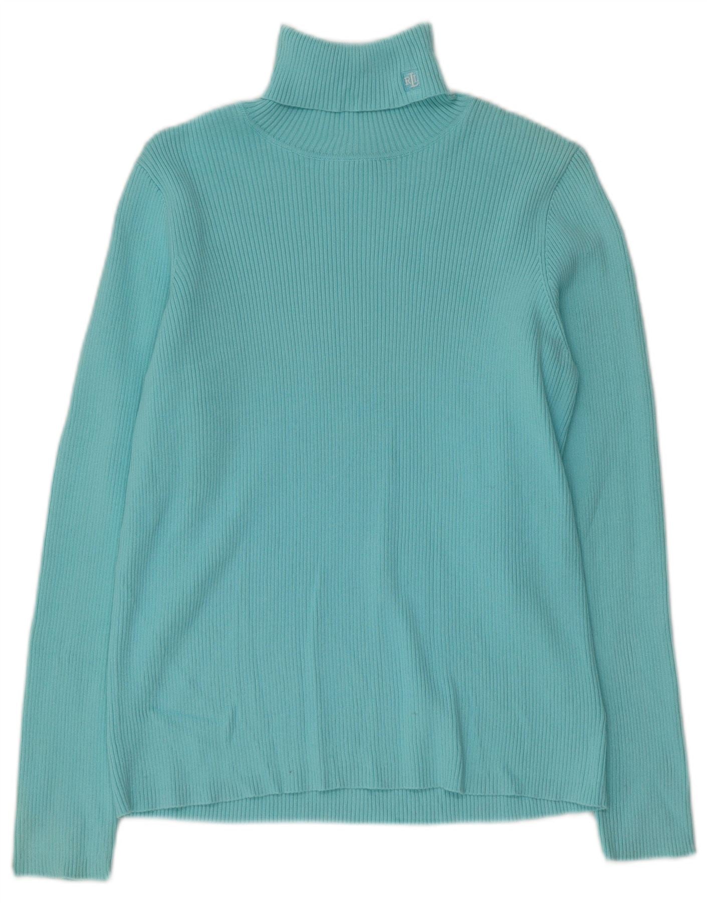 Pulover pentru femei RALPH LAUREN cu gât rulat din bumbac mare albastru UK 14