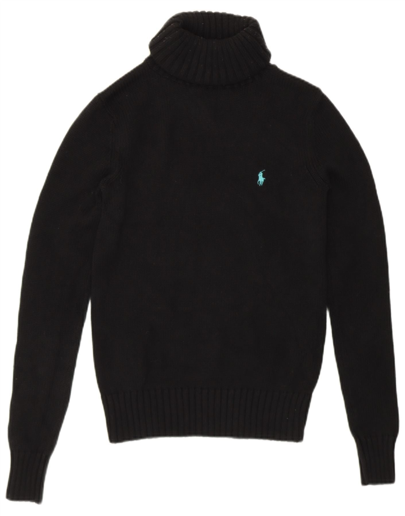 Pulover pentru femei RALPH LAUREN cu gât rulat, bumbac mic negru UK 8
