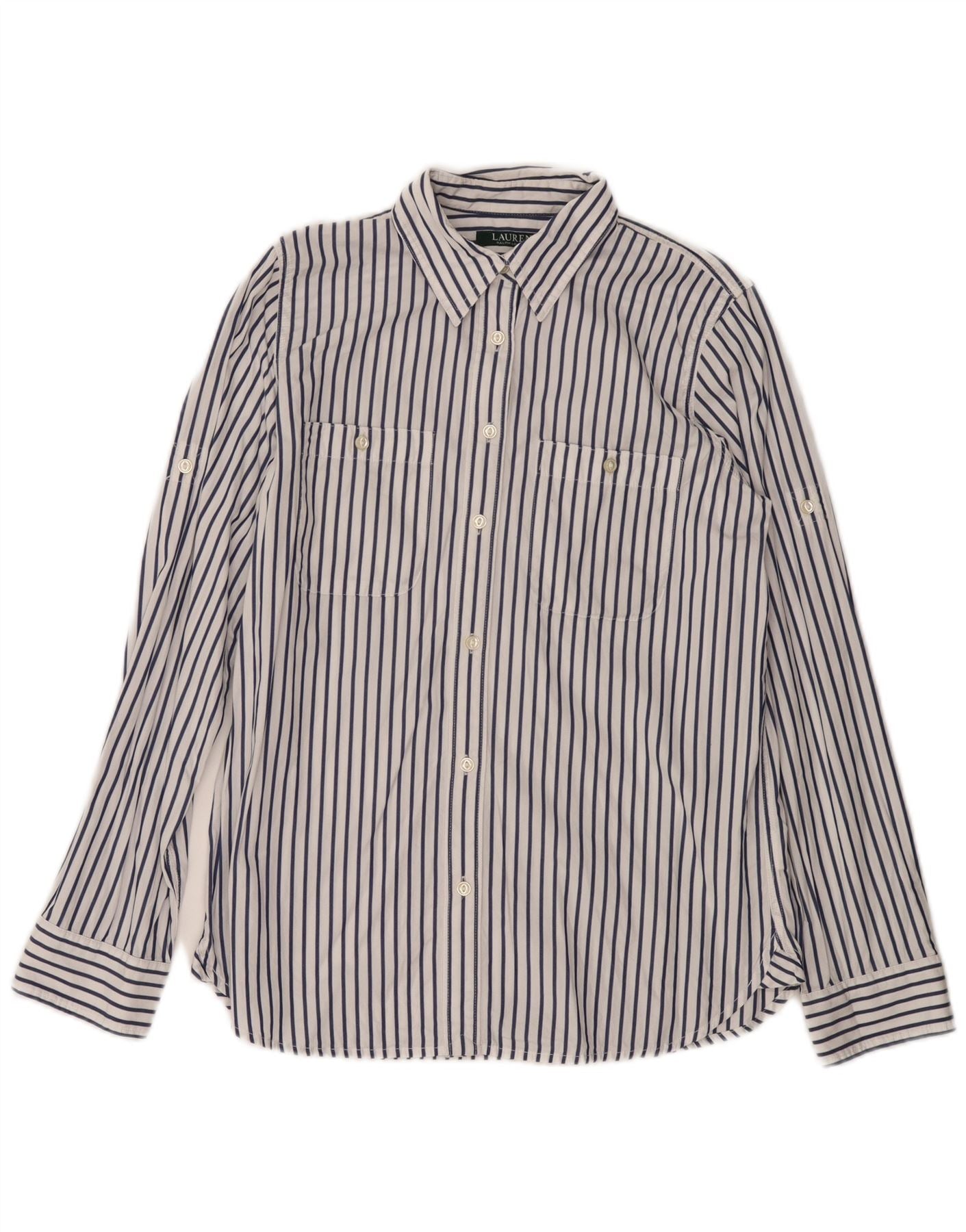 Cămașă pentru femei RALPH LAUREN UK 14, bumbac cu dungi alb medii