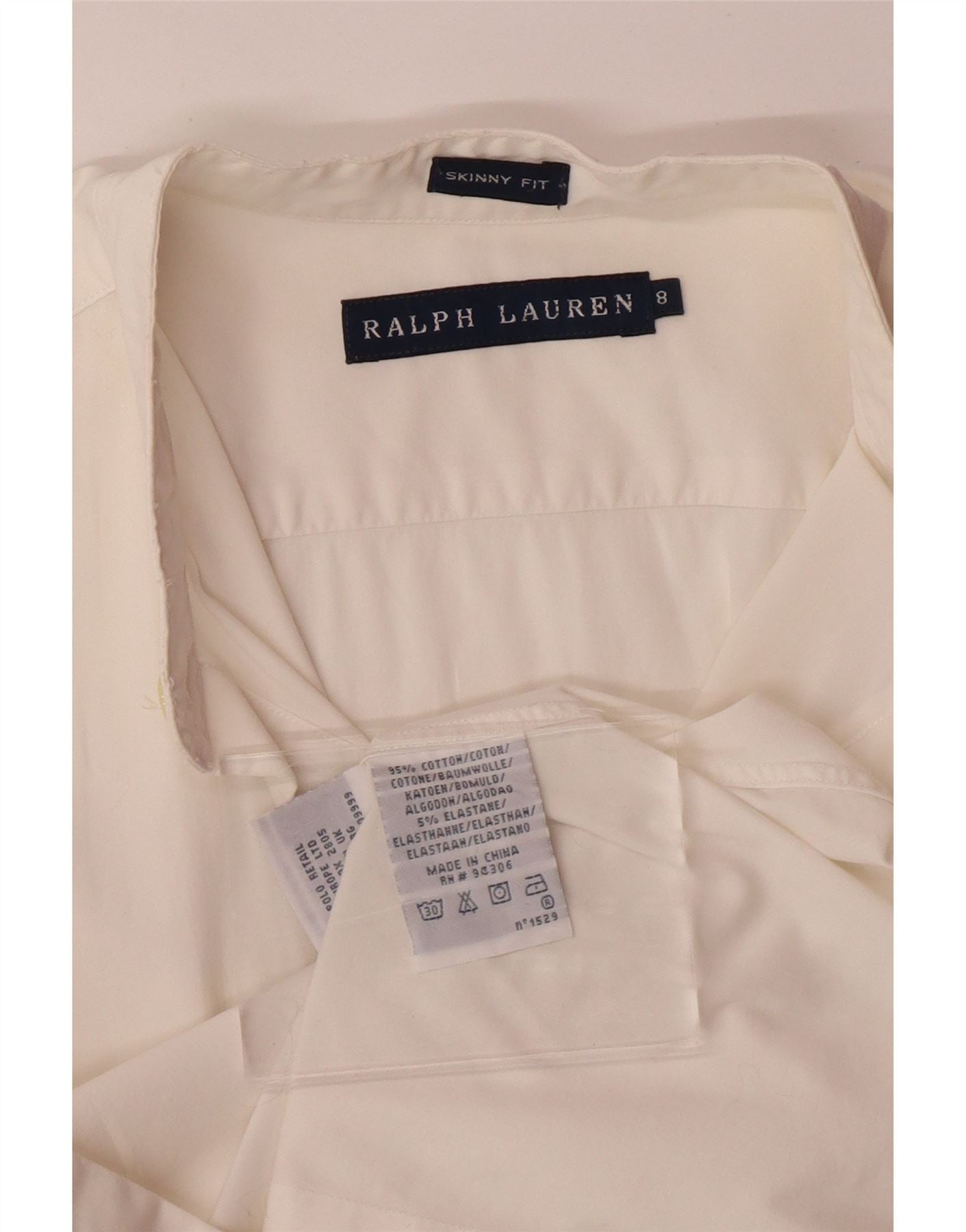 Cămașă RALPH LAUREN pentru femei, cu tăiere subțire, US 8, bumbac alb mediu