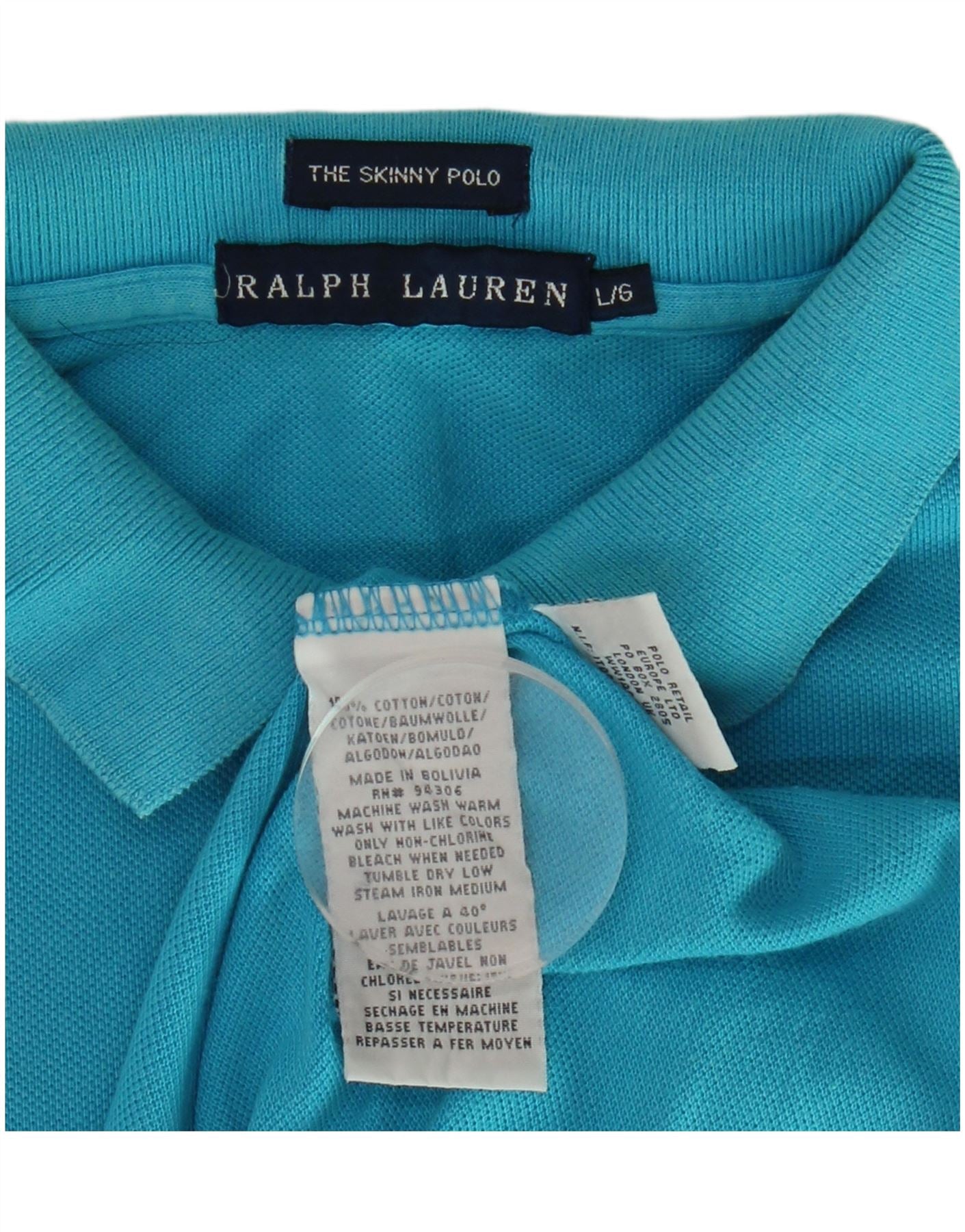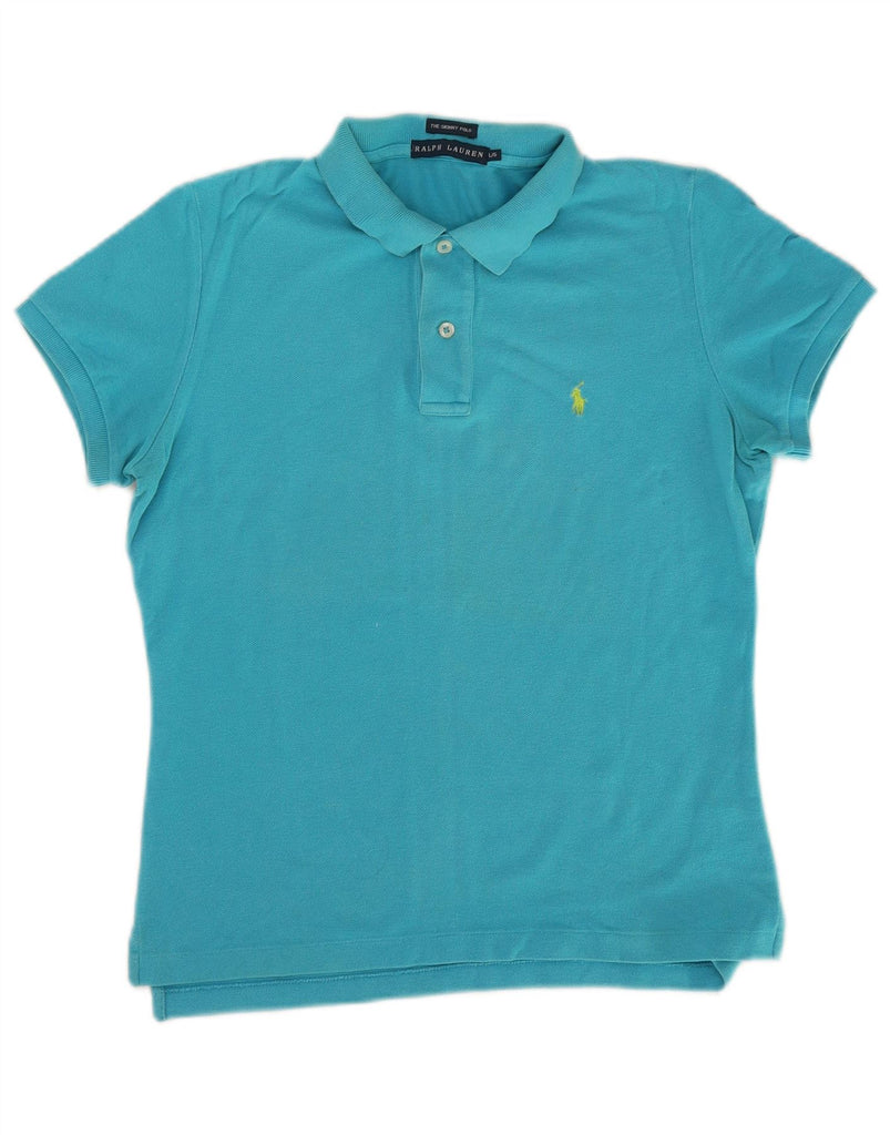 RALPH LAUREN Womens Skinny Polo Shirt UK 14 Large Blue Cotton