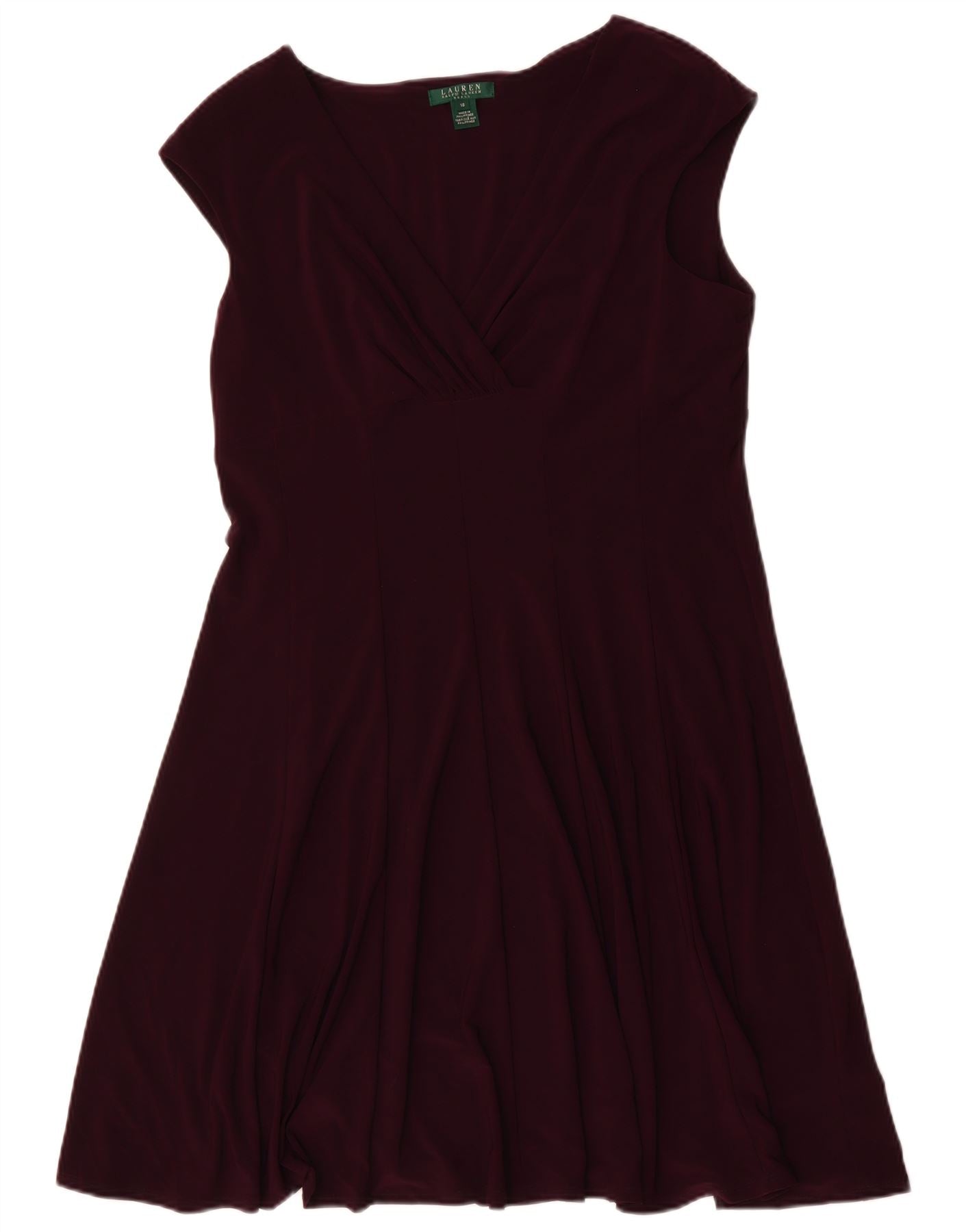 RALPH LAUREN Womens Sleeveless A-Line Dress US 18 2XL Burgundy Polyester