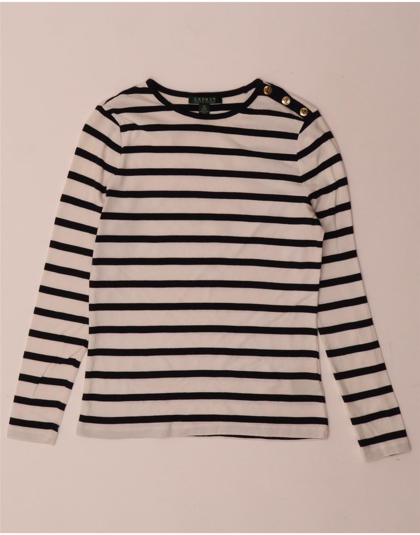 Top pentru femei RALPH LAUREN cu mânecă lungă UK 12, bumbac cu dungi albe medii