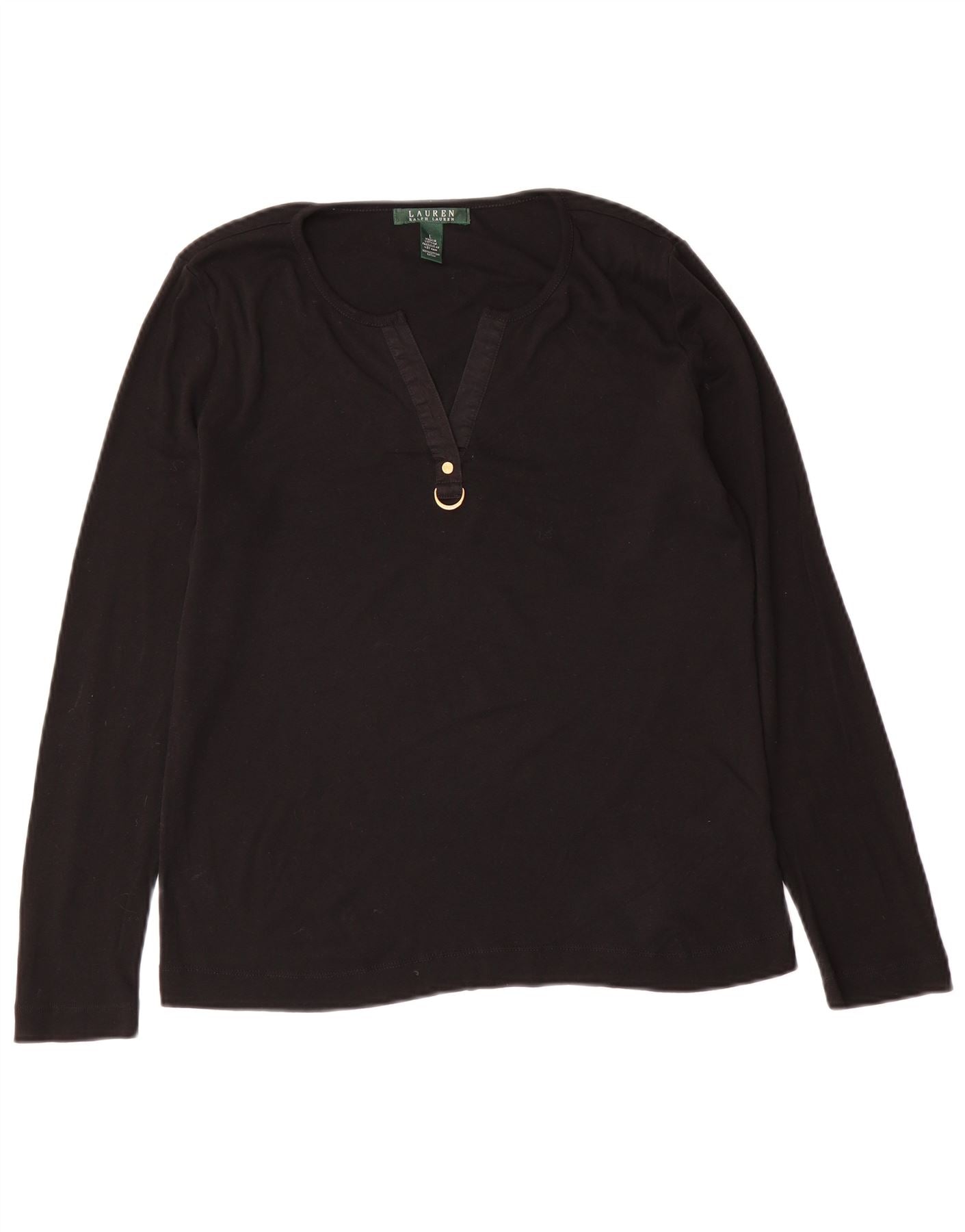 Top pentru femei RALPH LAUREN cu mânecă lungă UK 16 mare bumbac negru