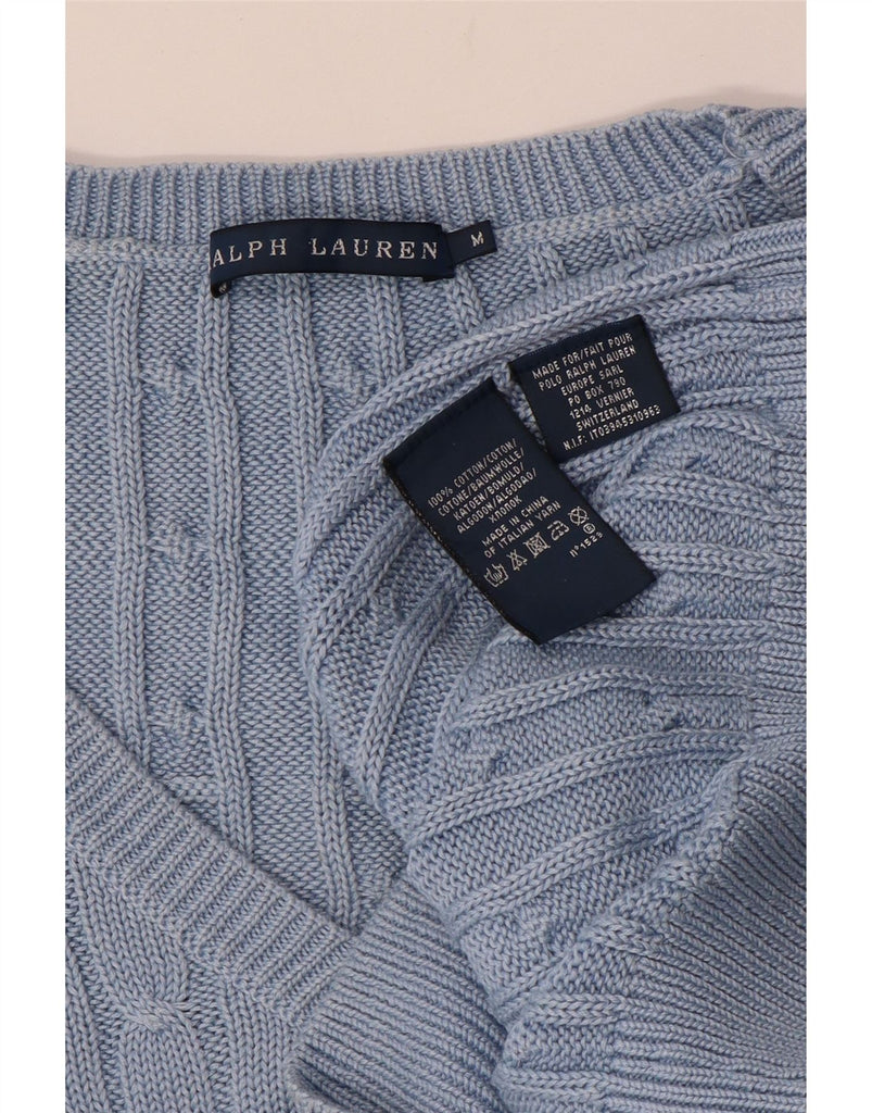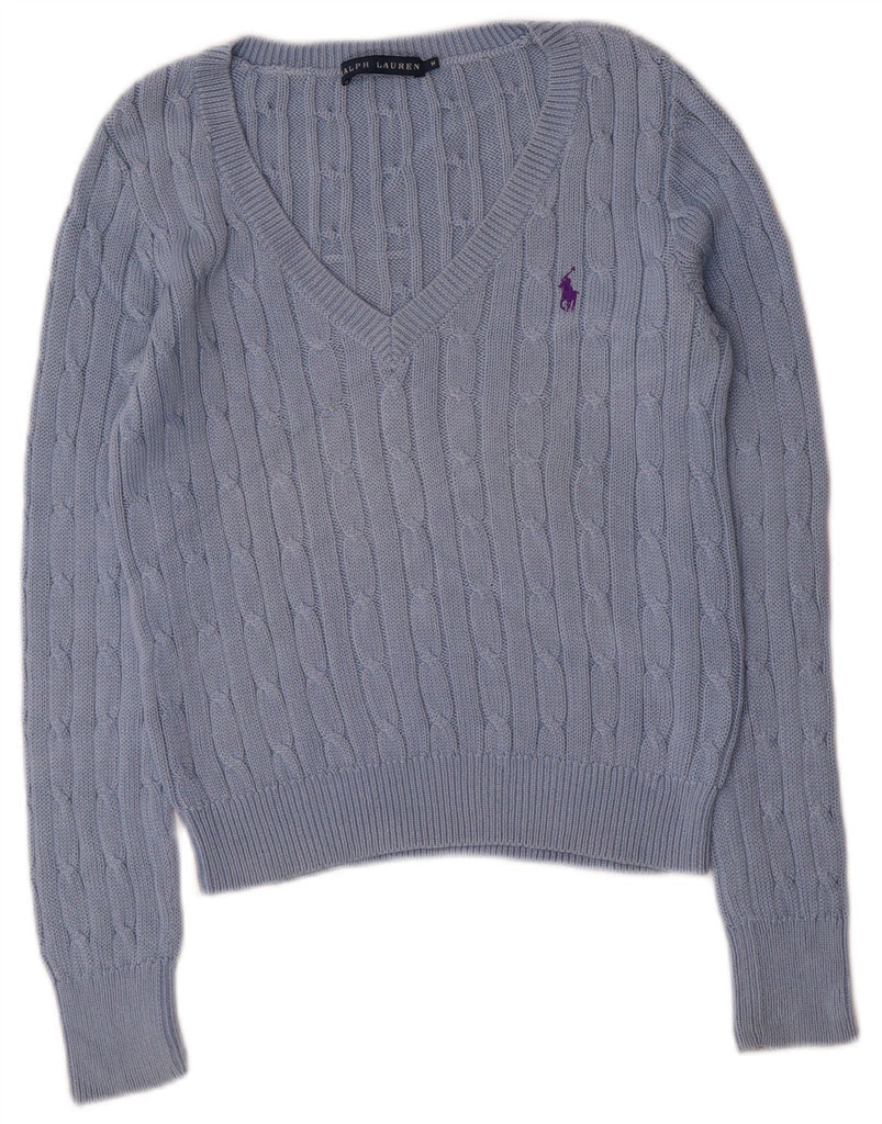RALPH LAUREN Pulover cu decolteu în V pentru femei UK 12 Bumbac albastru mediu