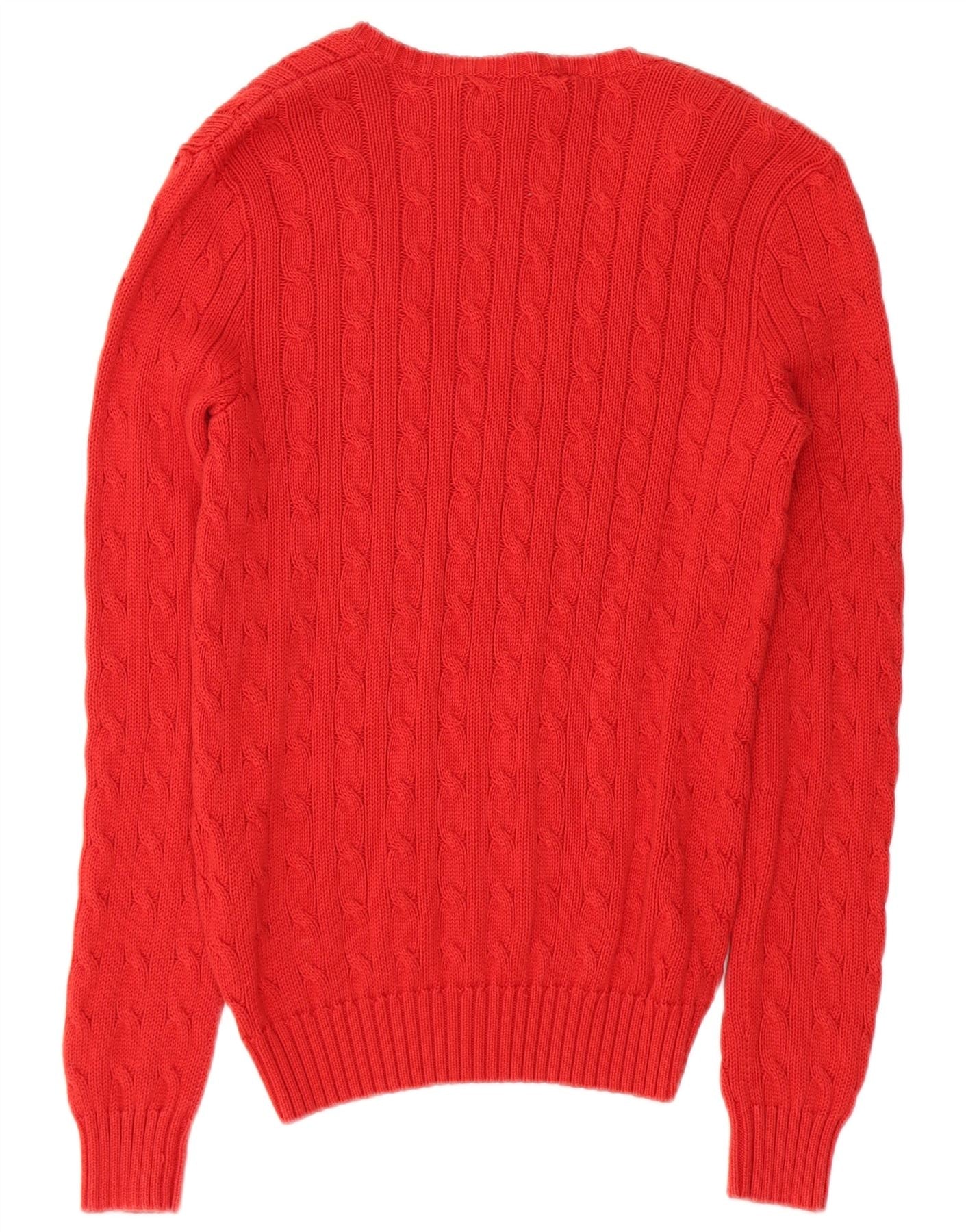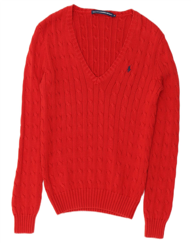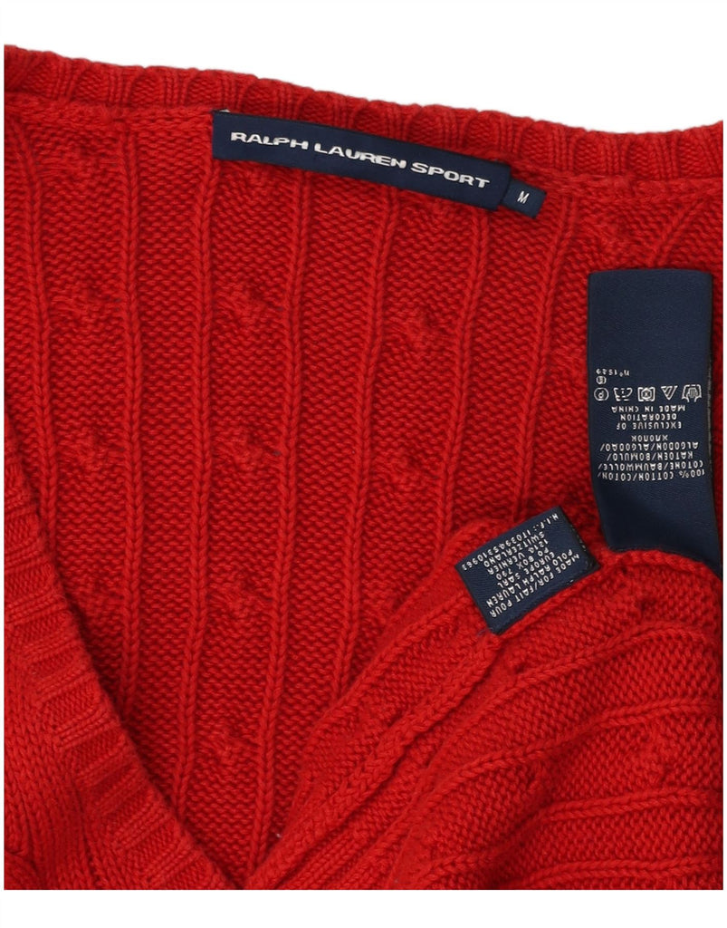 RALPH LAUREN Womens V-Neck Jumper Sweater UK 12 Medium Red Cotton