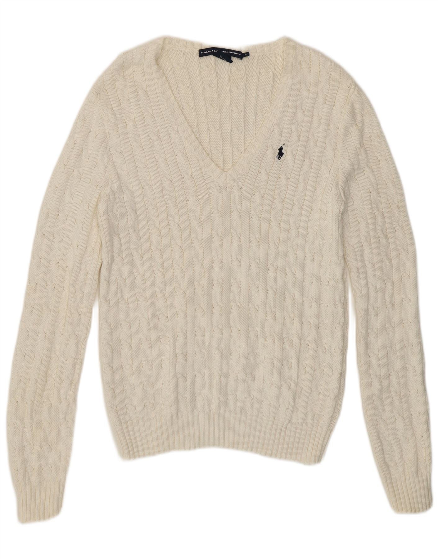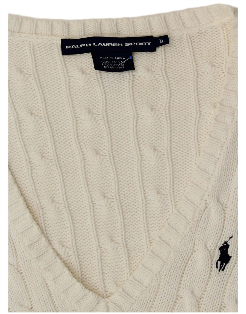 RALPH LAUREN Womens V-Neck Jumper Sweater UK 18 XL White Cotton