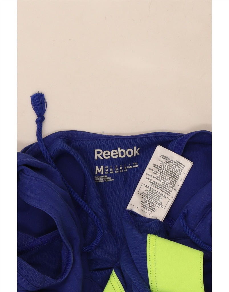 REEBOK Womens 3/4 Sleeve Hoodie Jumper UK 12/14 Medium Blue Cotton