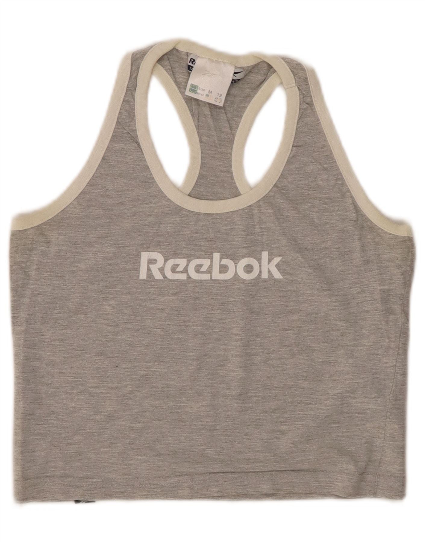 Reebok Crop Graphic Vest Top pentru femei UK 12 Medium Grey Flecked Bumbac