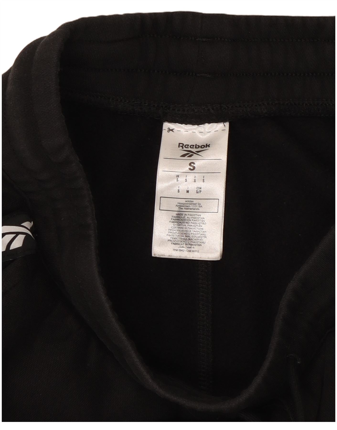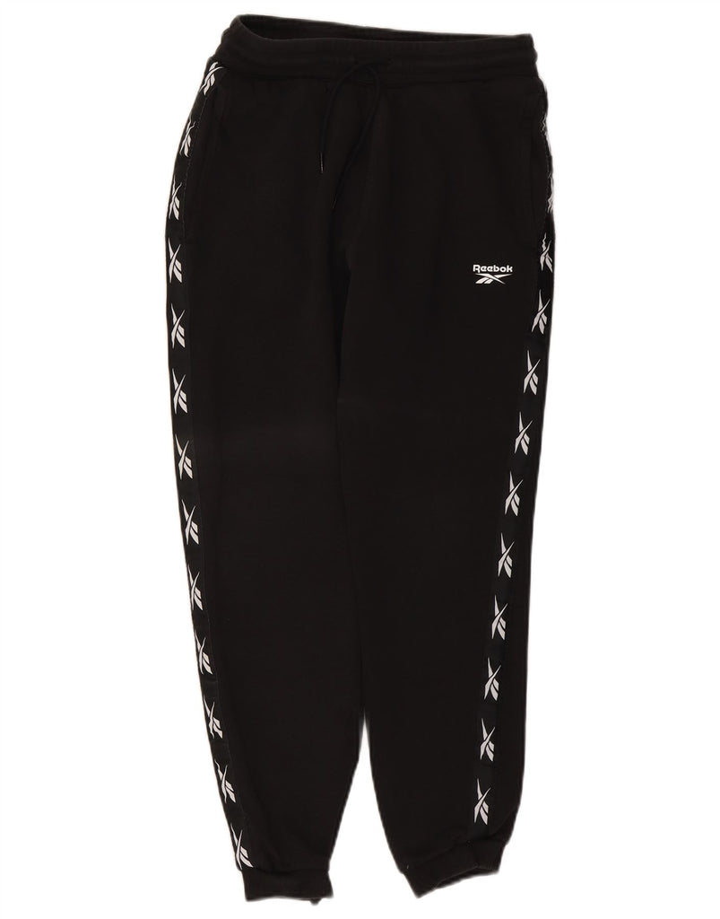 REEBOK Womens Graphic Tracksuit Trousers Joggers UK 8 Small Black Cotton