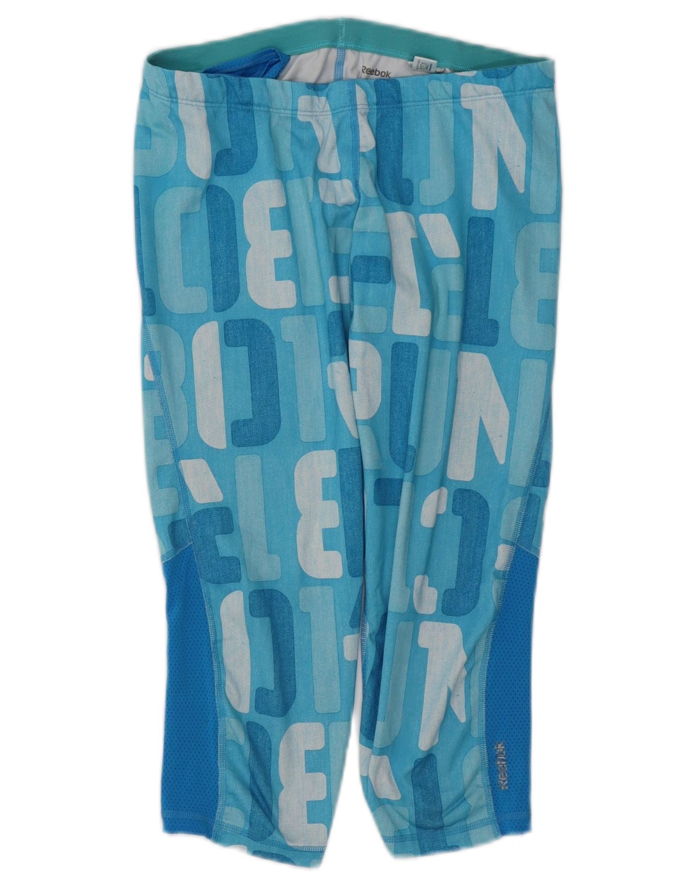 Pantaloni de trening grafic REEBOK pentru femei UK 12 Medium Blue Colorblock