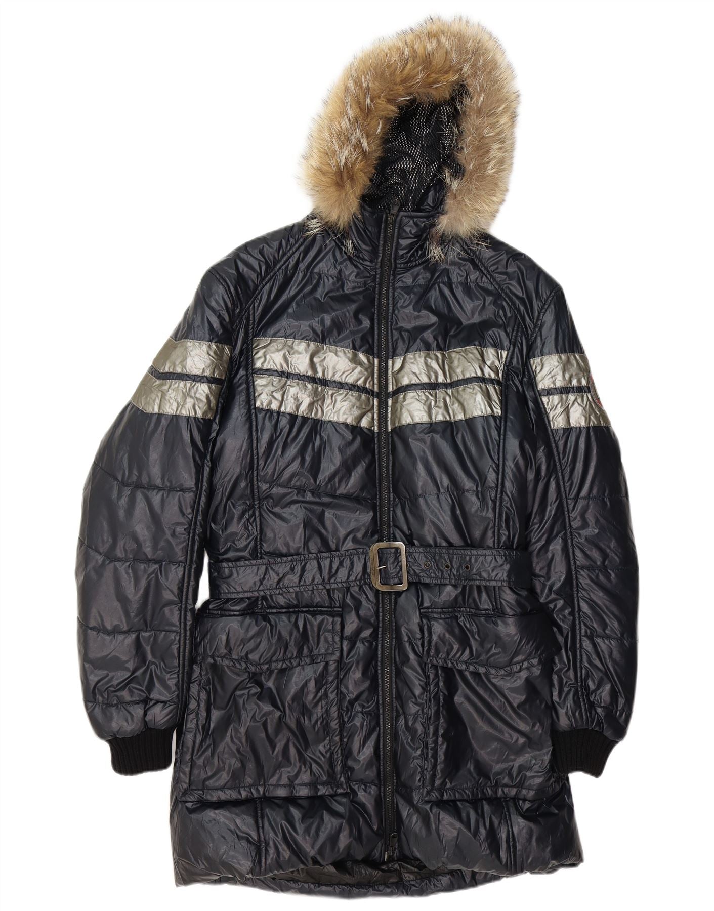 REFRIGIWEAR Womens Hooded Padded Coat UK 16 Large Black Colourblock