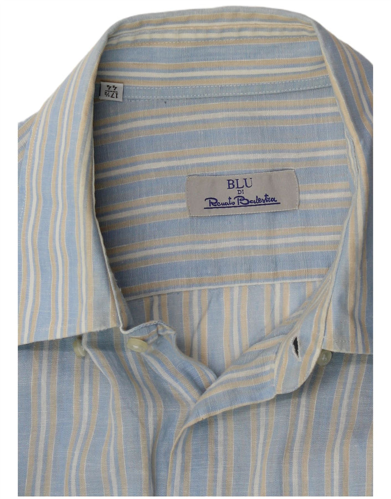 RENATO BALESTRA Mens Shirt Size 17 1/2 44 XL Blue Striped