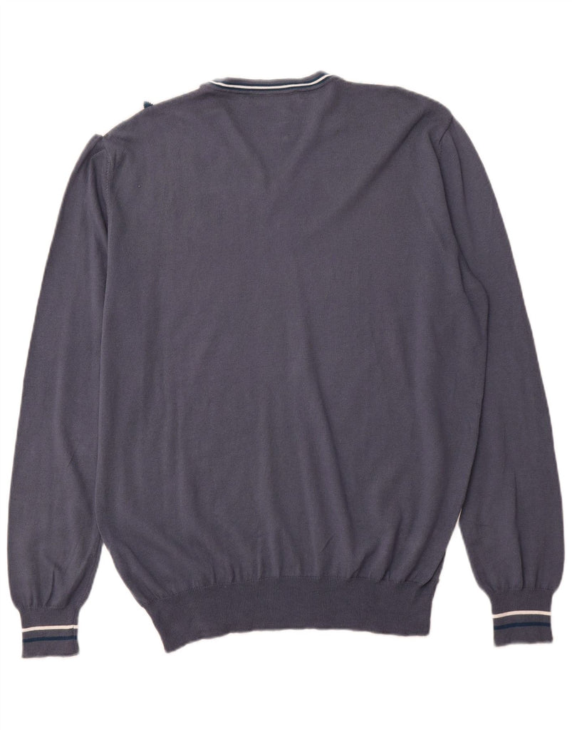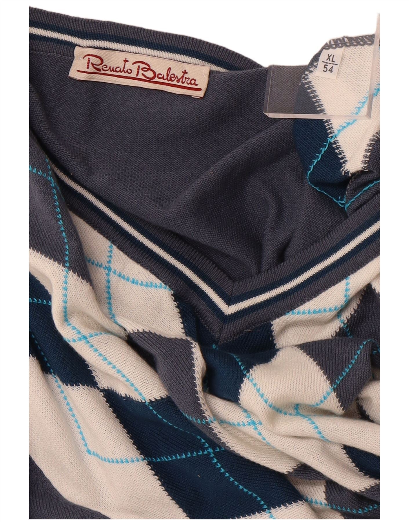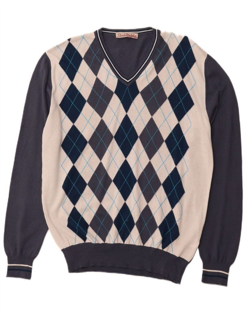 RENATO BALESTRA Mens V-Neck Jumper Sweater IT 54 XL Blue Argyle/Diamond
