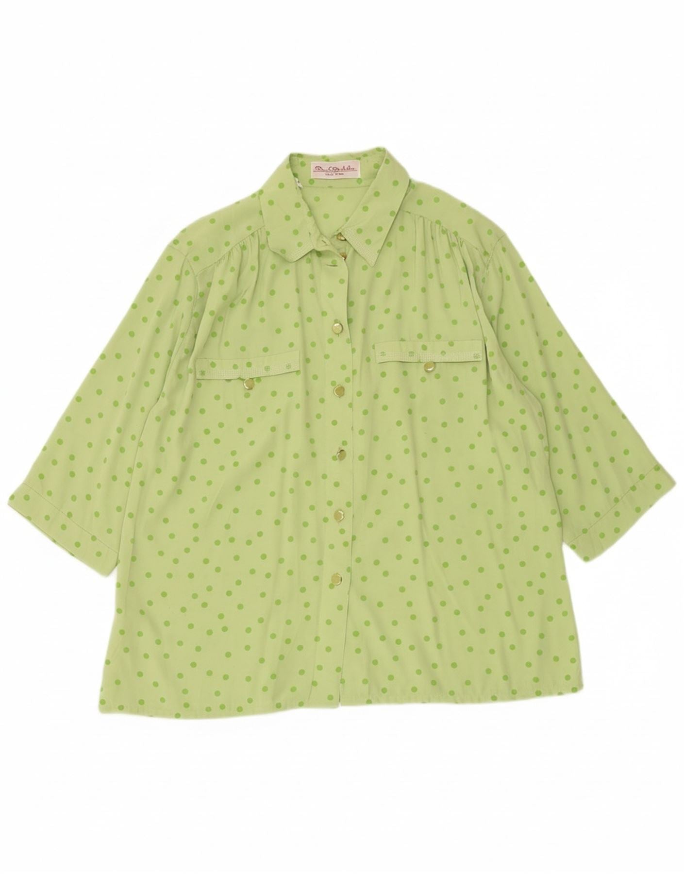 RENATO BALESTRA Womens Short Sleeve Shirt Blouse IT 48 XL Green Spotted