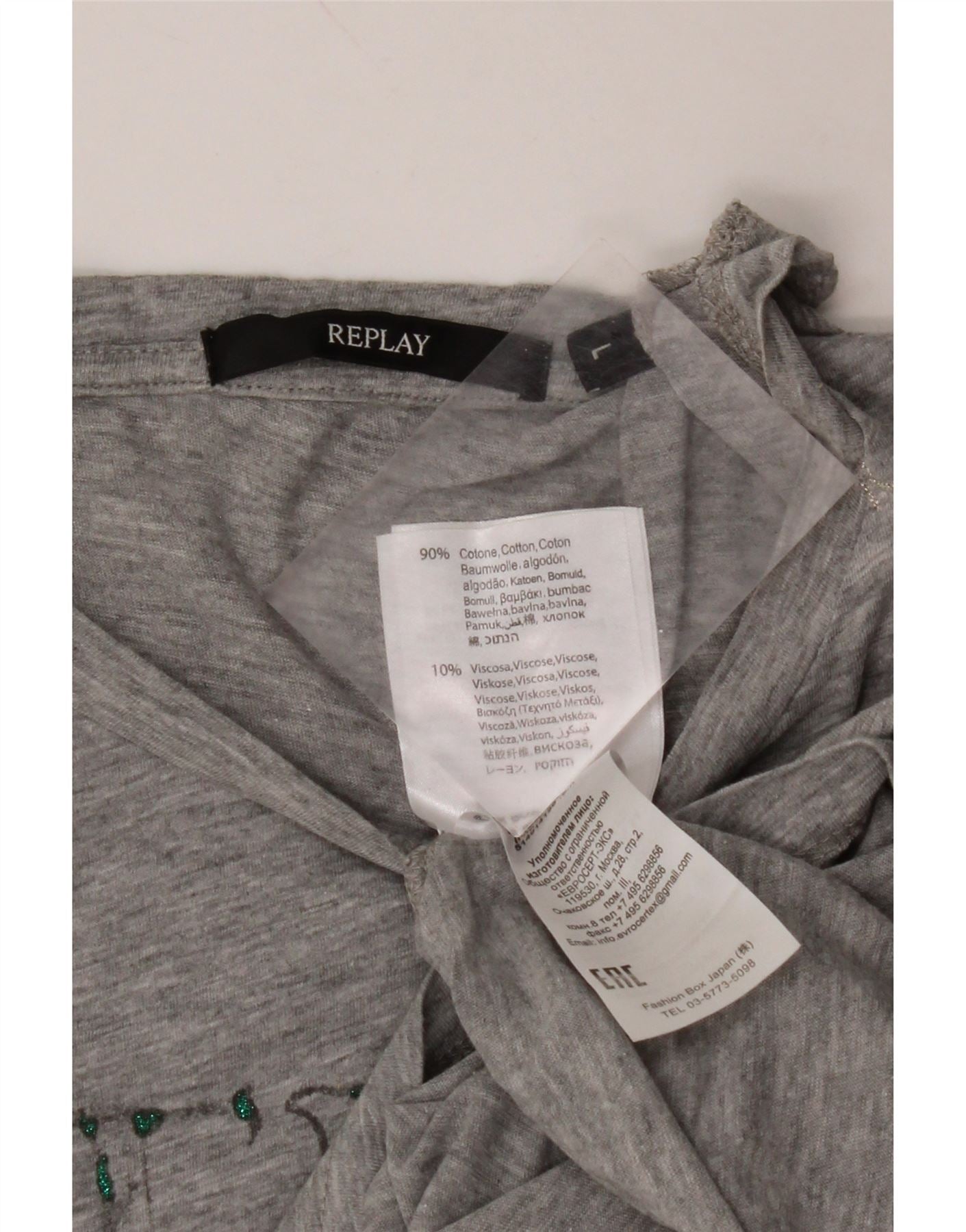 Tricou grafic pentru femei REPLAY Top UK 16 mare bumbac gri