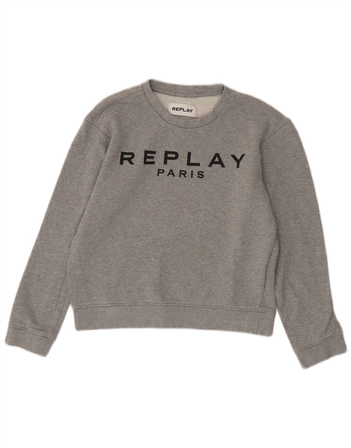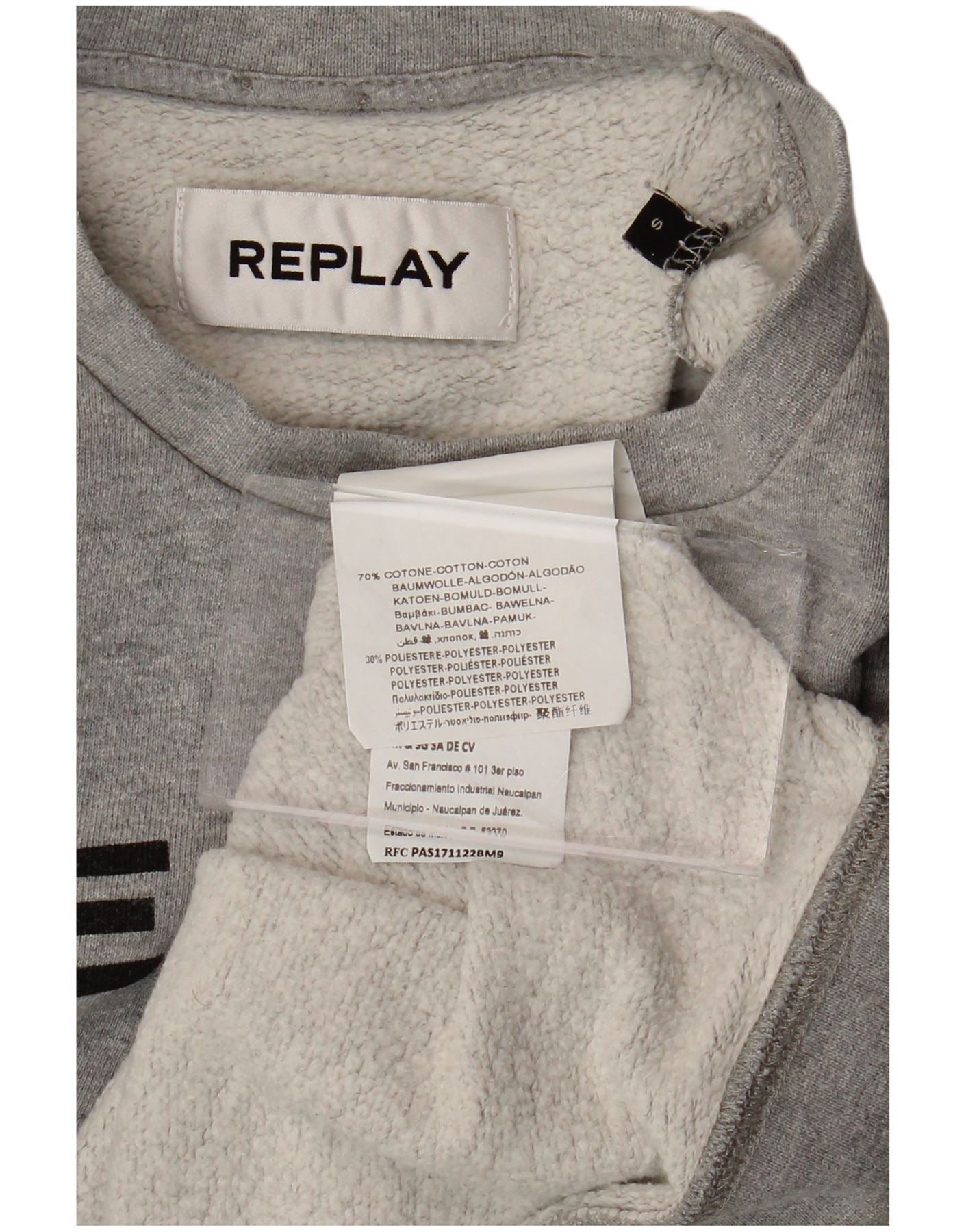 REPLAY Pulover pentru damă Paris Crop Graphic Pulover UK 10 Bumbac gri mic