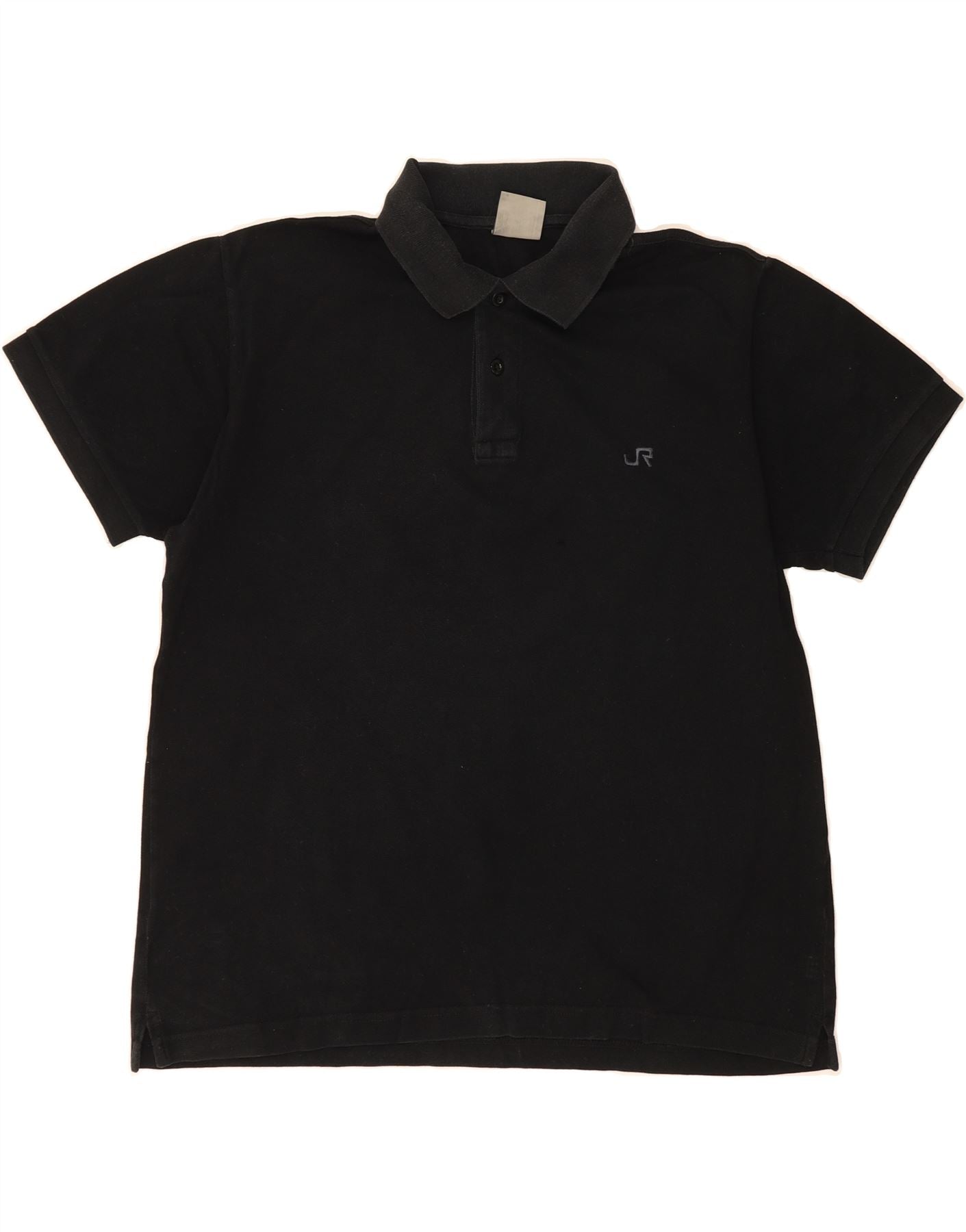 - AI Description: This pre-owned Rifle polo shirt for men is crafted from 100% cotton knit fabric, ensuring breathability and comfort. The black, short-sleeved polo features a collared neckline and a button closure. With a regular fit, it's ideal for casual wear. A subtle logo accent adds a touch of branding. Noticeable minor holes or tears located on the front. Label size: M.