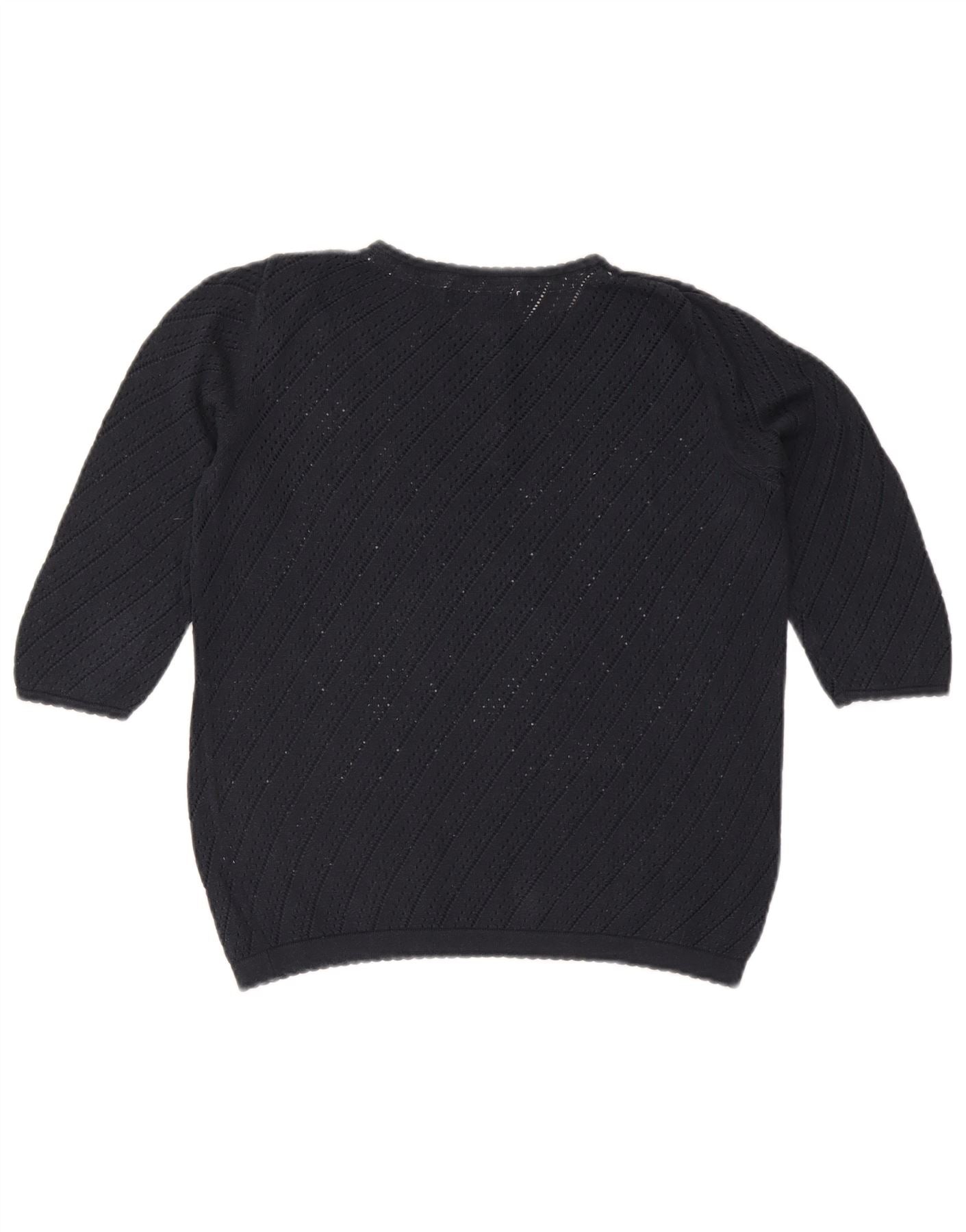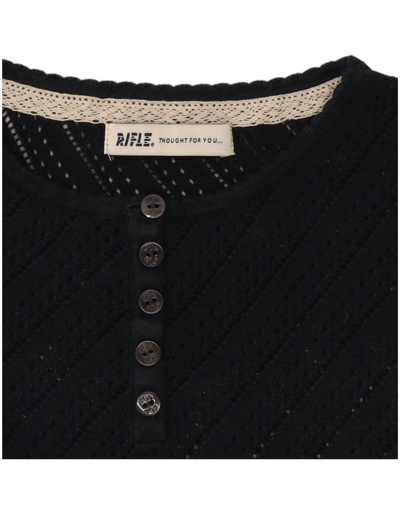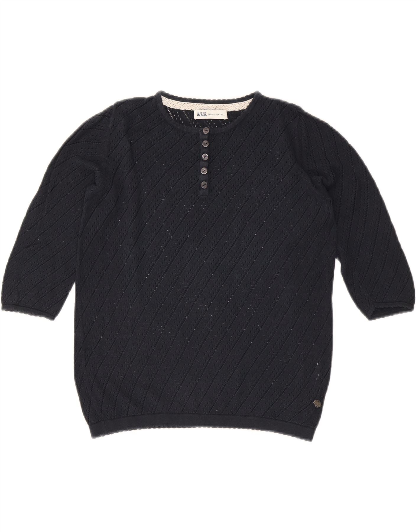 RIFLE Womens 3/4 Sleeve Button Neck Jumper Sweater UK 12 Medium Navy Blue