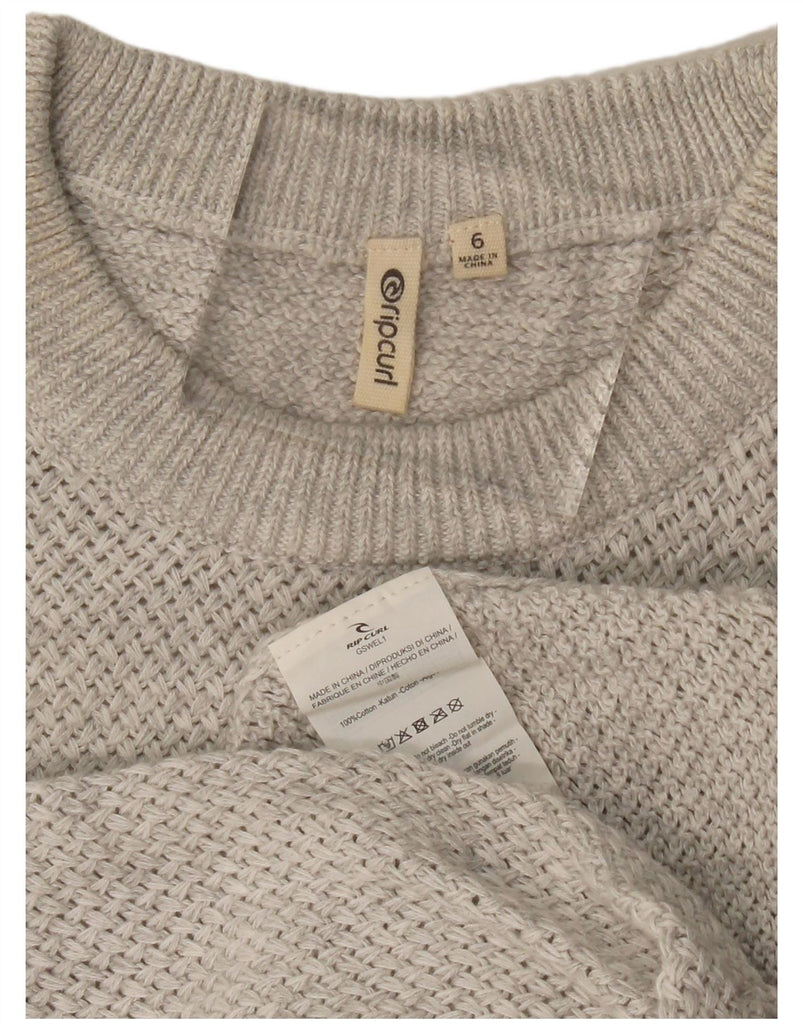 RIP CURL Womens Longline Crew Neck Jumper Sweater UK 6 XS Grey Cotton