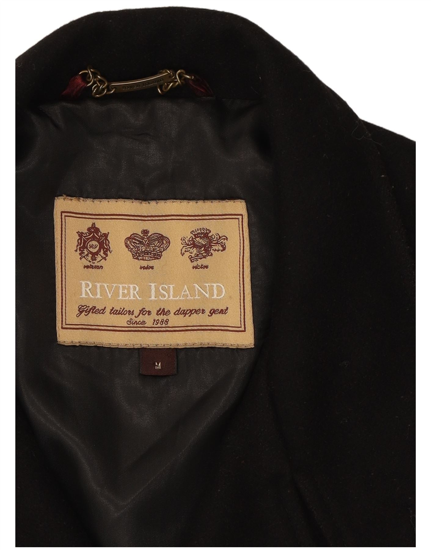RIVER ISLAND Mens Double Breasted Coat UK 38 Medium Black Wool