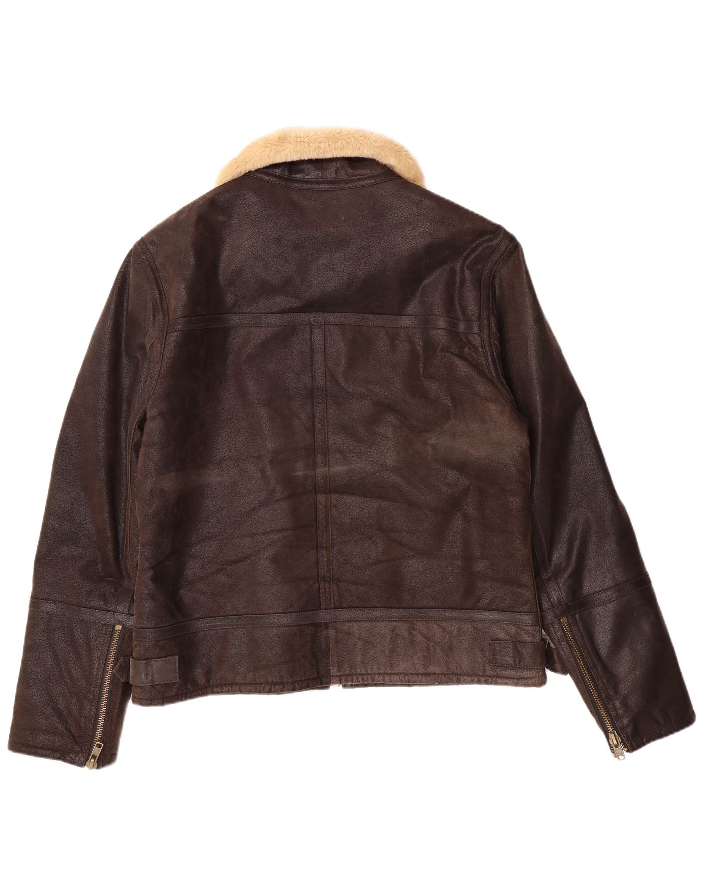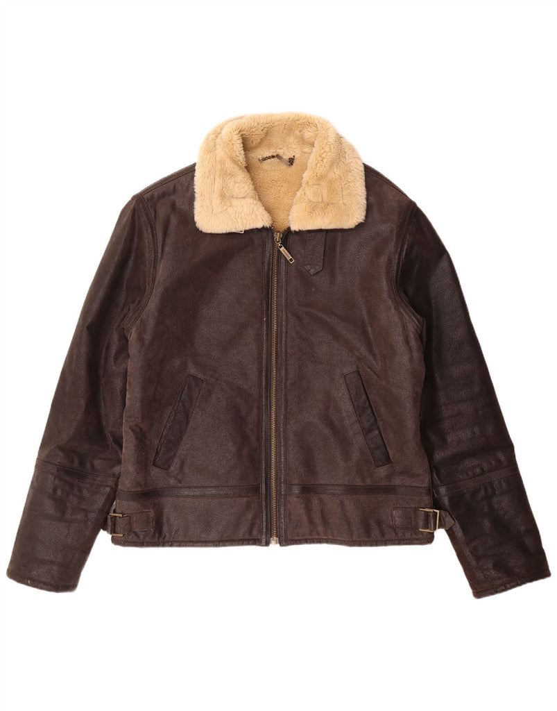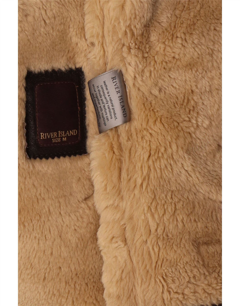 RIVER ISLAND Mens Leather Sherpa Jacket UK 38 Medium Brown Leather