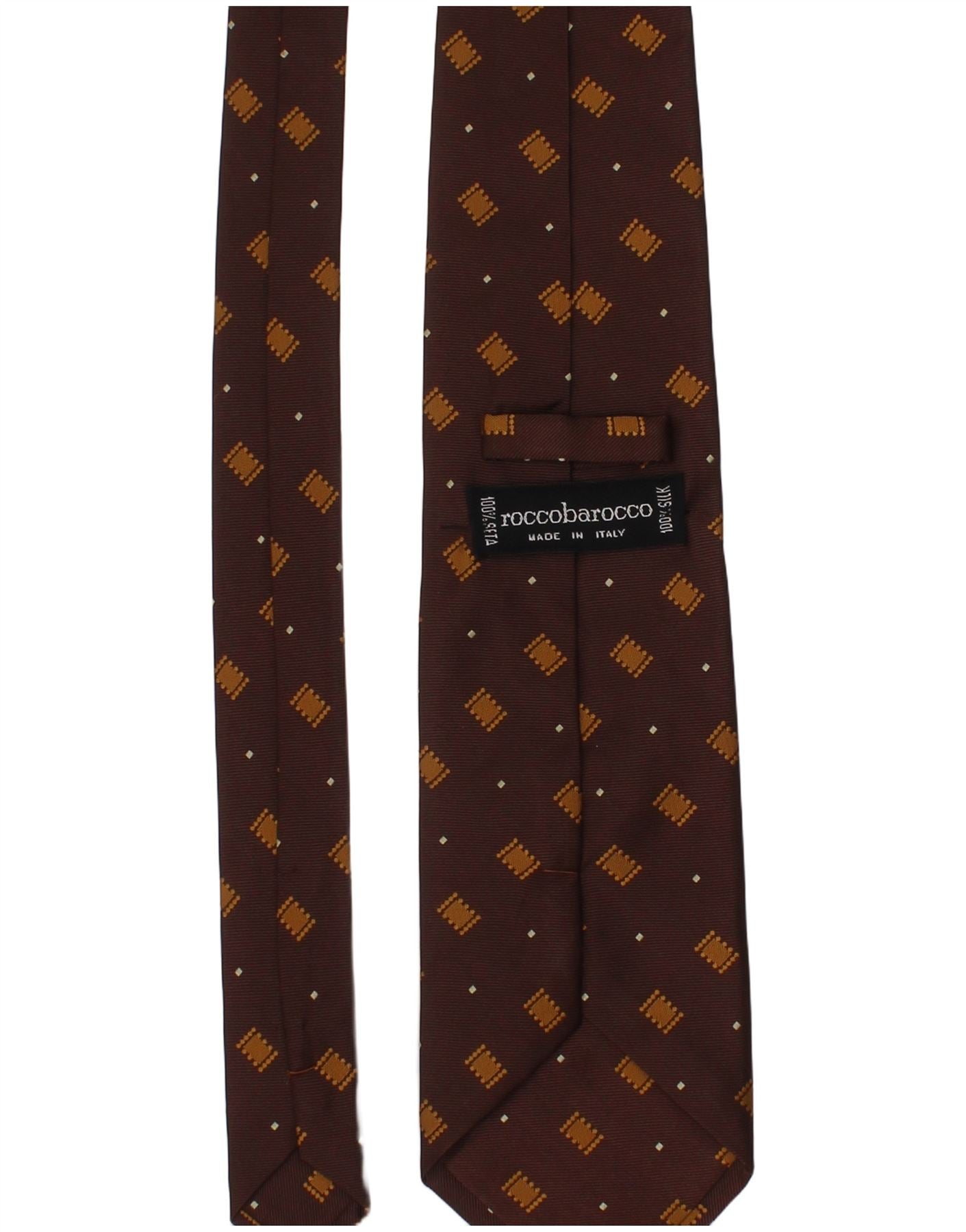 ROCCOBAROCCO Mens Tie One Size Brown Geometric Silk Classic