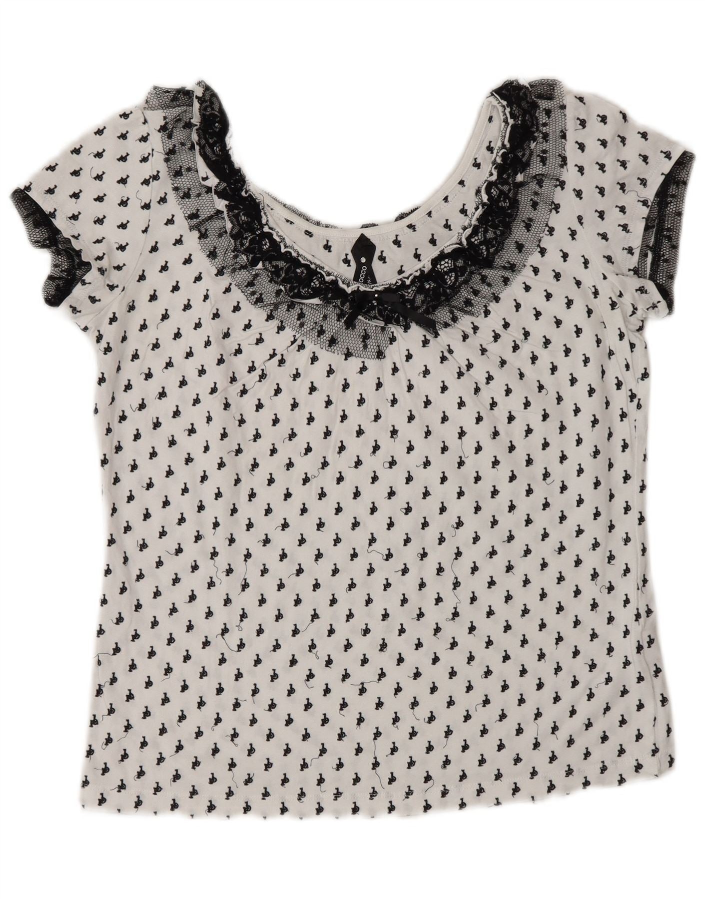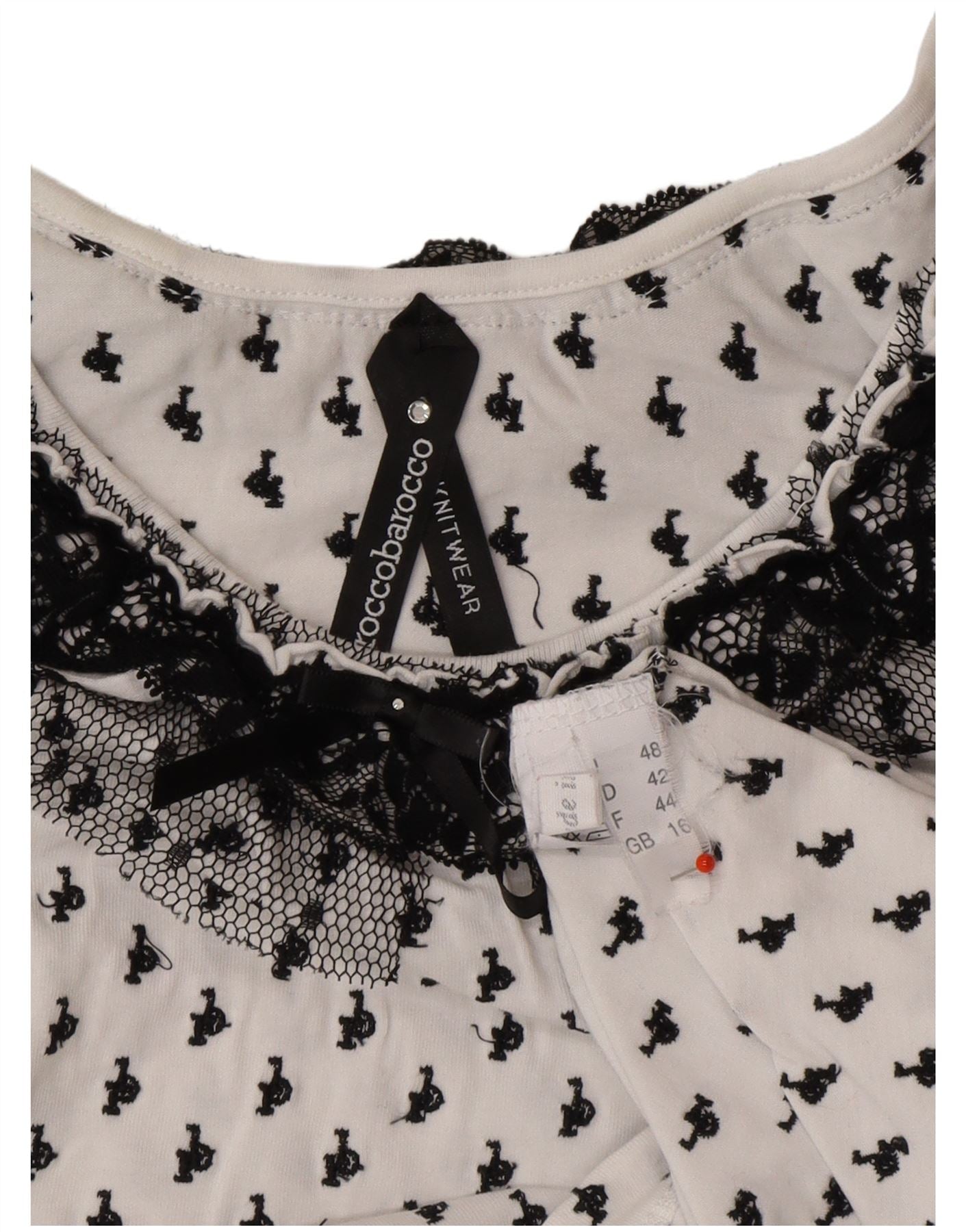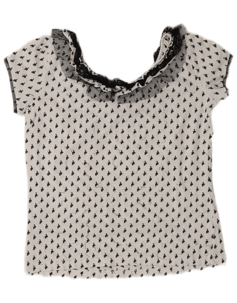 ROCCOBAROCCO Womens Crop Graphic Blouse Top UK 16 Large White Polyamide