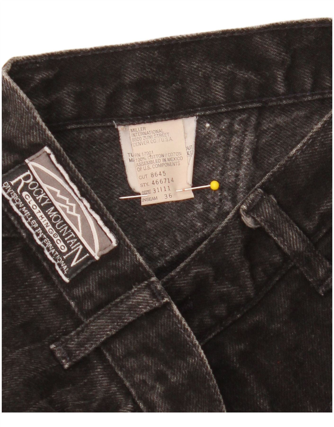 - AI Description: These Rocky Mountain womens High Waist Jeans are crafted from 100 percent cotton denim, featuring a subtle pinstripe pattern in classic black. They boast a flattering high waist and a secure button closure. The regular fit offers comfort, while the tapered legs create a modern silhouette. Practical pockets are included, and a discreet logo accent adds a signature touch. This design combines timeless style with contemporary detailing.