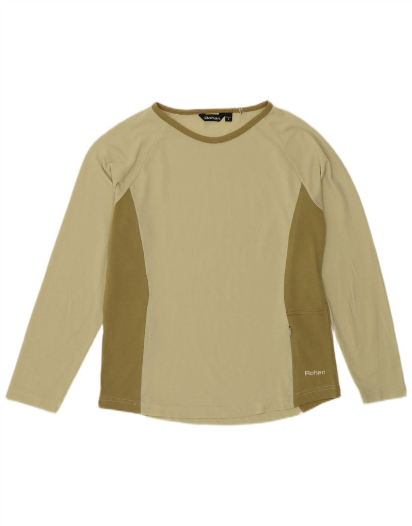 ROHAN Womens Top Long Sleeve UK 10 Small Khaki Colourblock Polyester