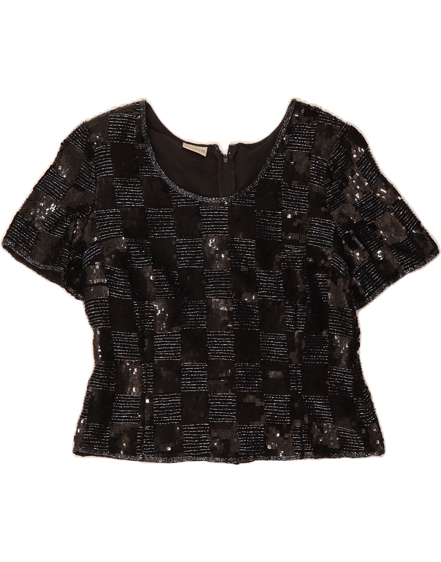 ROMAN Womens Crop Blouse Top UK 16 Large Black Check Polyester