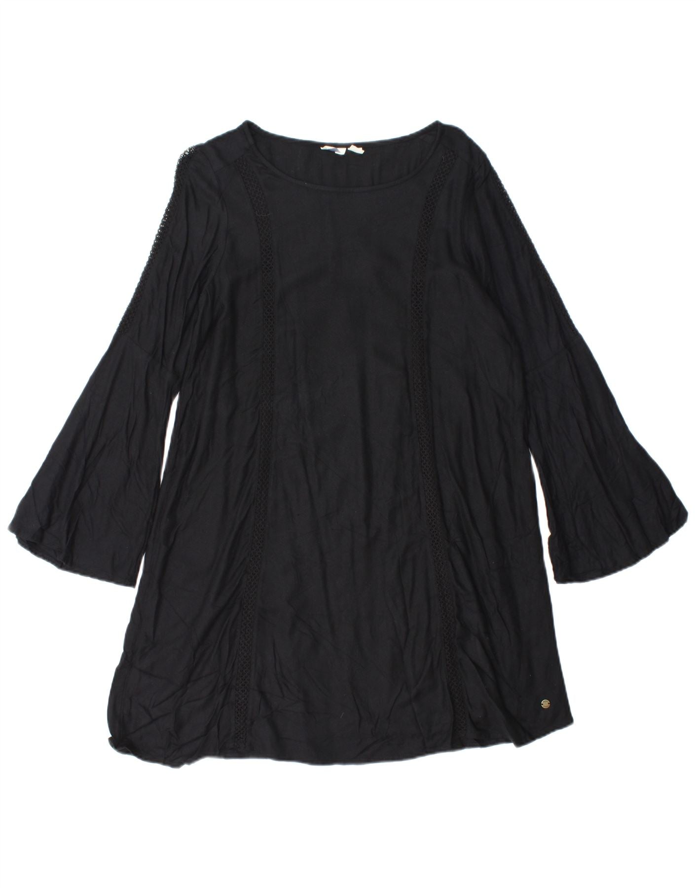 ROXY Rochie A-Line cu mânecă lungă pentru femei UK 10 Bumbac negru mic