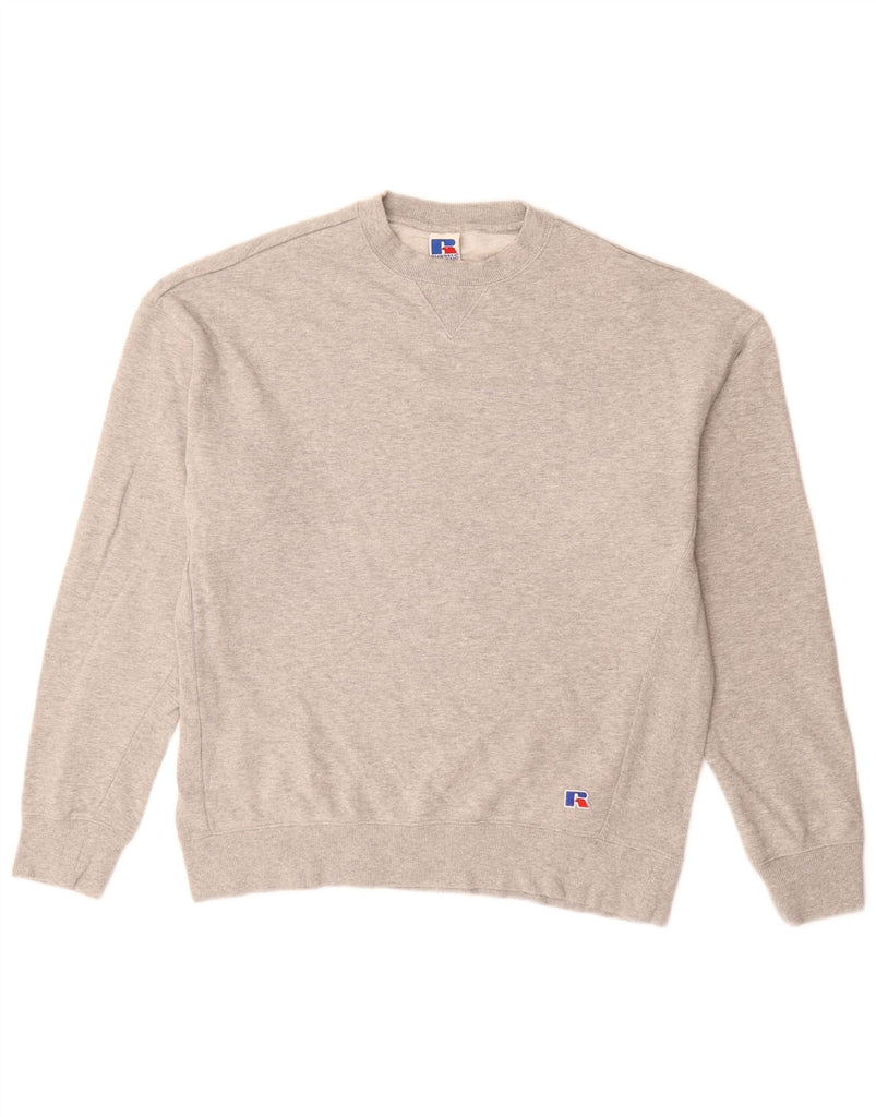 RUSSELL ATHLETIC Mens Sweatshirt Jumper Large Grey Flecked Cotton