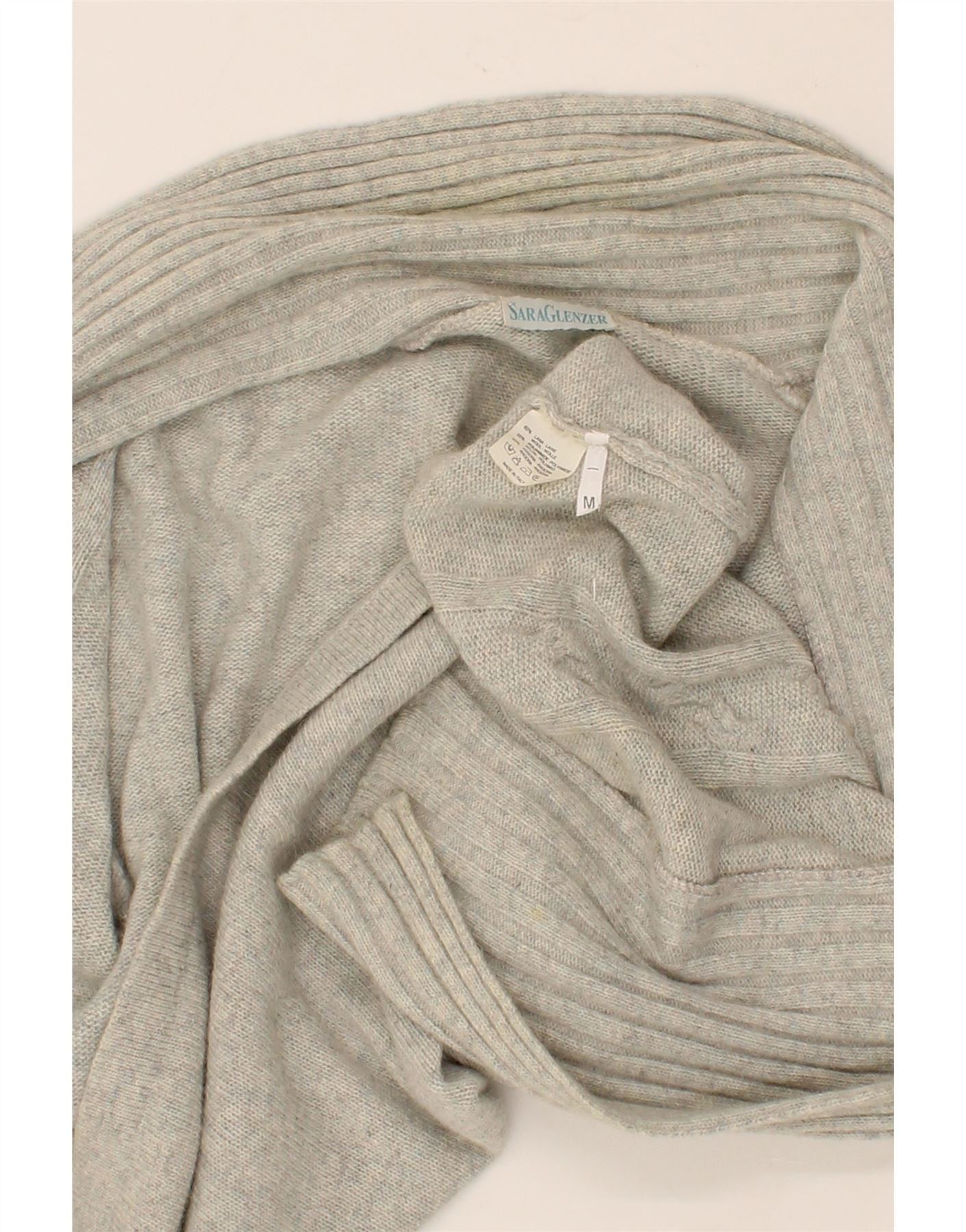 SARA GLENZER Womens Open Cardigan Sweater UK 14 Medium Grey Wool