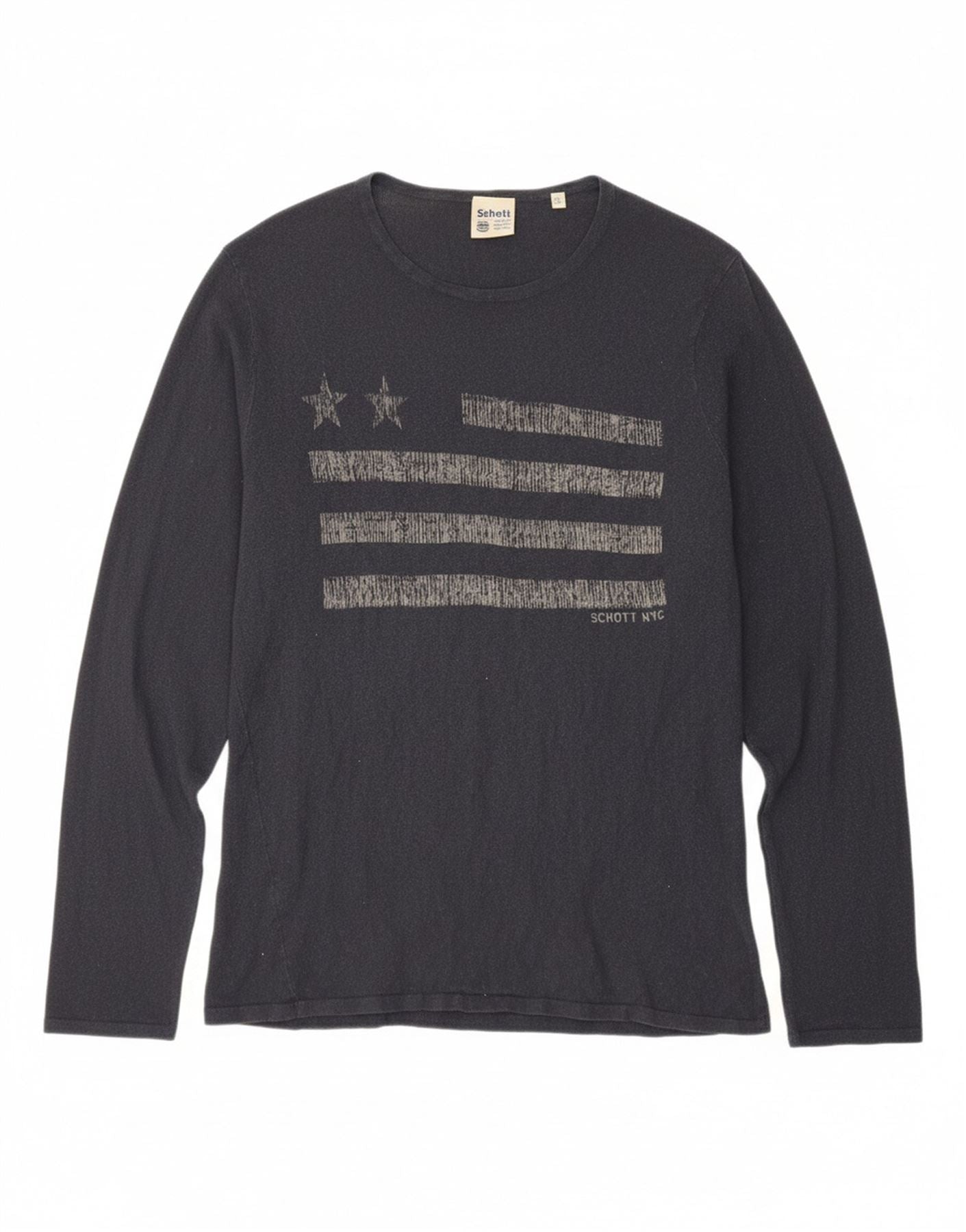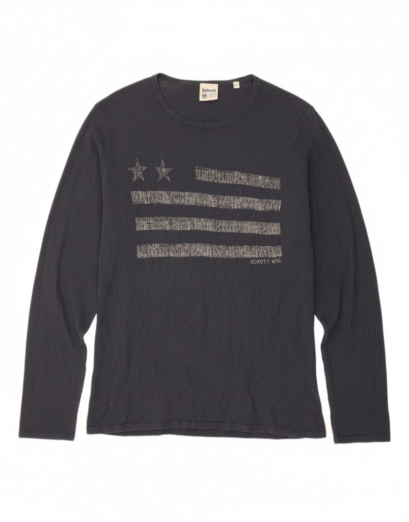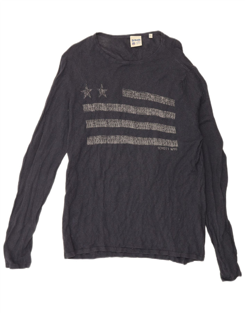 SCHOTT Boys Graphic Crew Neck Jumper Sweater 13-14 Years XL Navy Blue