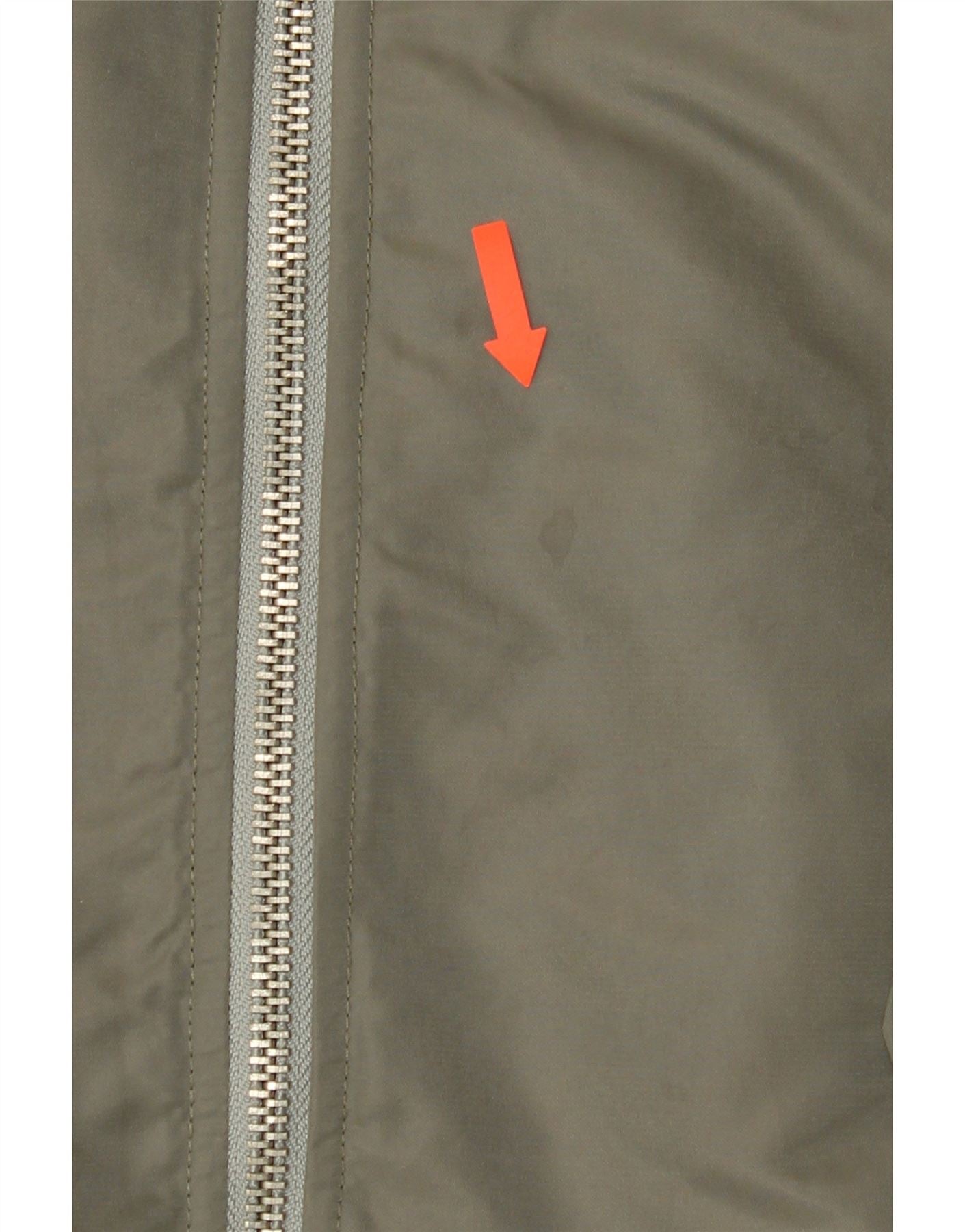 - AI Description: This pre-owned Schott bomber jacket is crafted from a woven acetate blend (55%). The army-style jacket features a zip closure, long sleeves, and a regular fit. It comes in a versatile green hue, with zipped pockets for added convenience. Size M. Made in the U.S.A. There is some minor discoloration on the front. Washing instructions: 30.