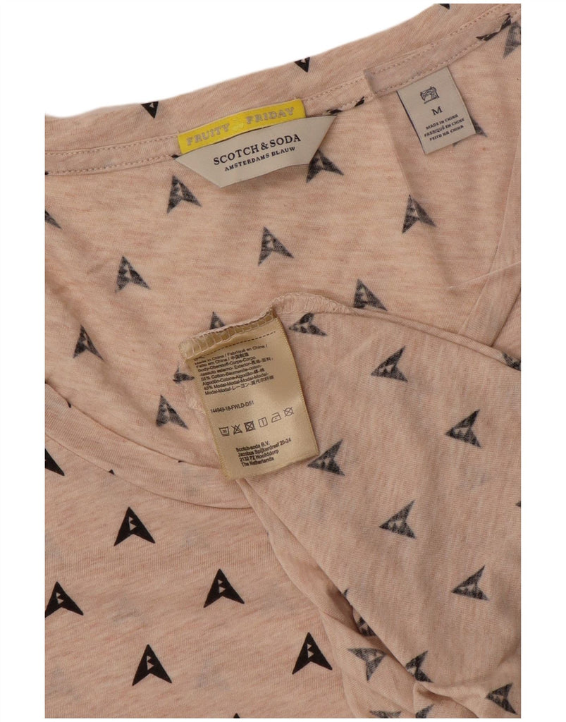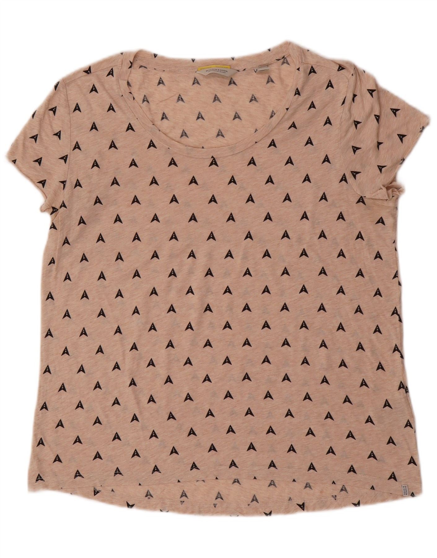 SCOTCH & SODA Womens Graphic T-Shirt Top UK 14 Medium Beige Geometric