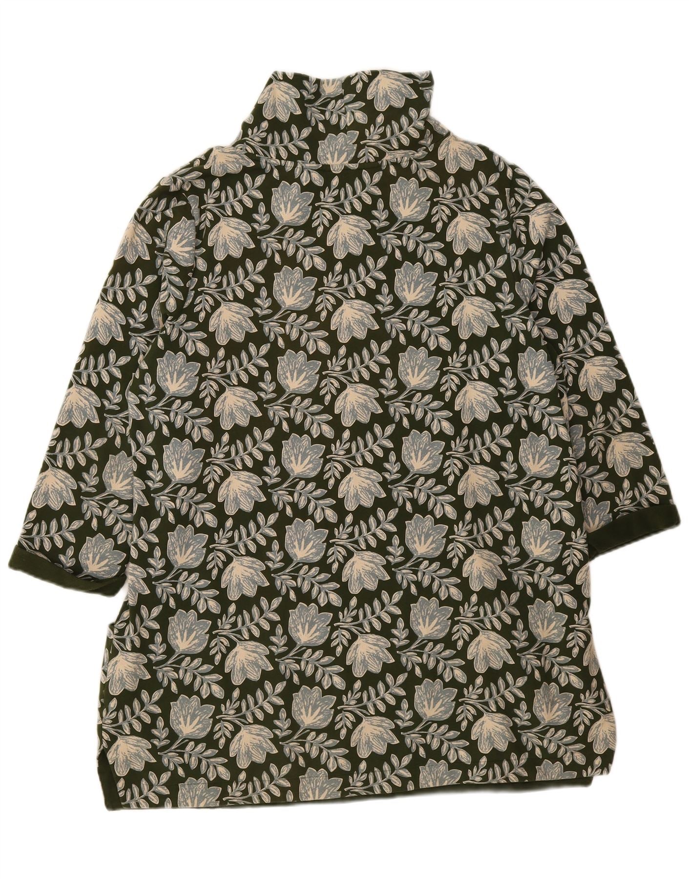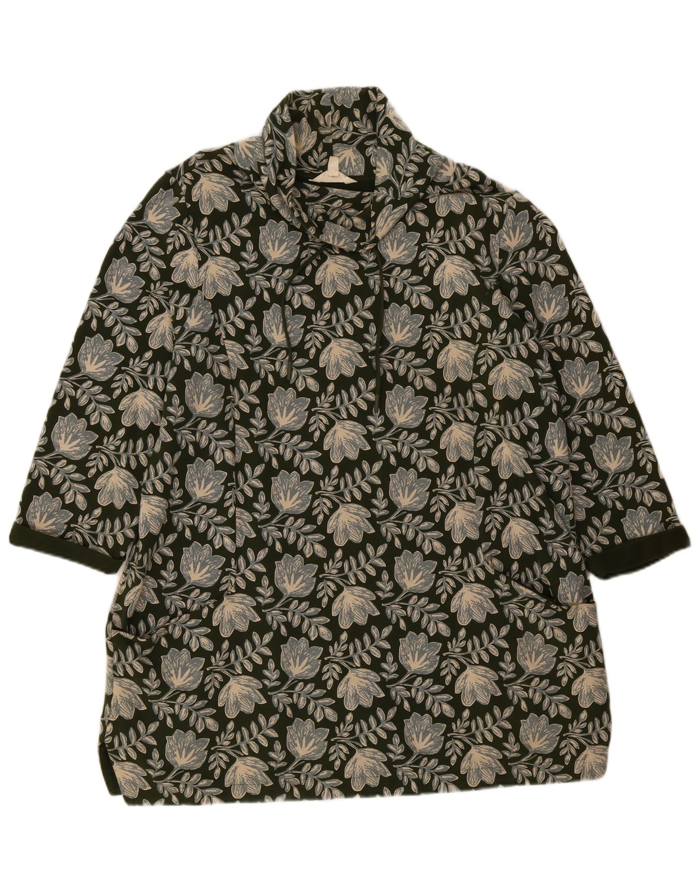 - AI Description: This Seasalt Cornwall women's shirt blouse is crafted from a green woven fabric, featuring a lively floral graphic pattern. It boasts a classic collared neckline and a neat button-up front. The three quarter length sleeves provide a relaxed yet structured appeal. Its regular fit ensures comfortable wear and a flattering silhouette for everyday style.
