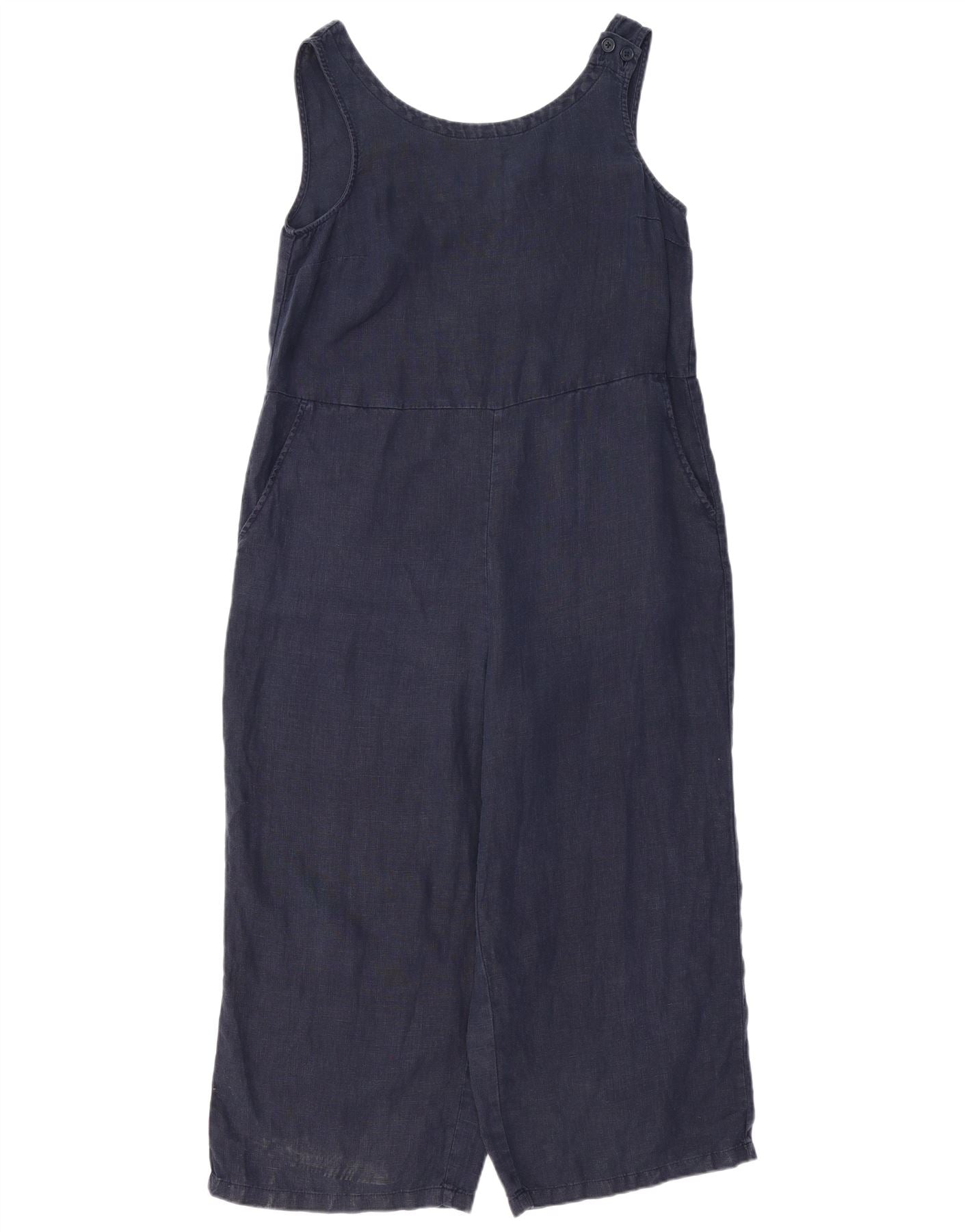 - AI Description: This Seasalt Cornwall womens jumpsuit is crafted from a navy blue woven fabric, offering a relaxed dungaree style. It features a V-neckline and a sleeveless design for a comfortable fit. Button closures add a practical accent. Functional pockets enhance its utility. The relaxed fit ensures ease of movement and a comfortable silhouette.