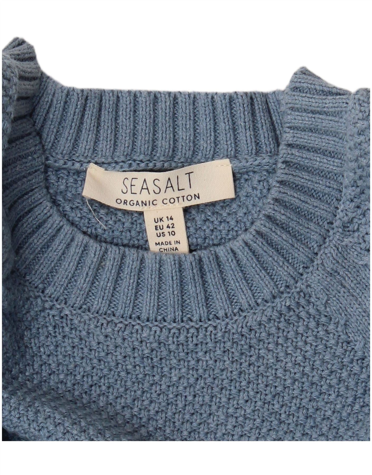 SEASALT Womens Crew Neck Jumper Sweater UK 14 Large Blue Cotton