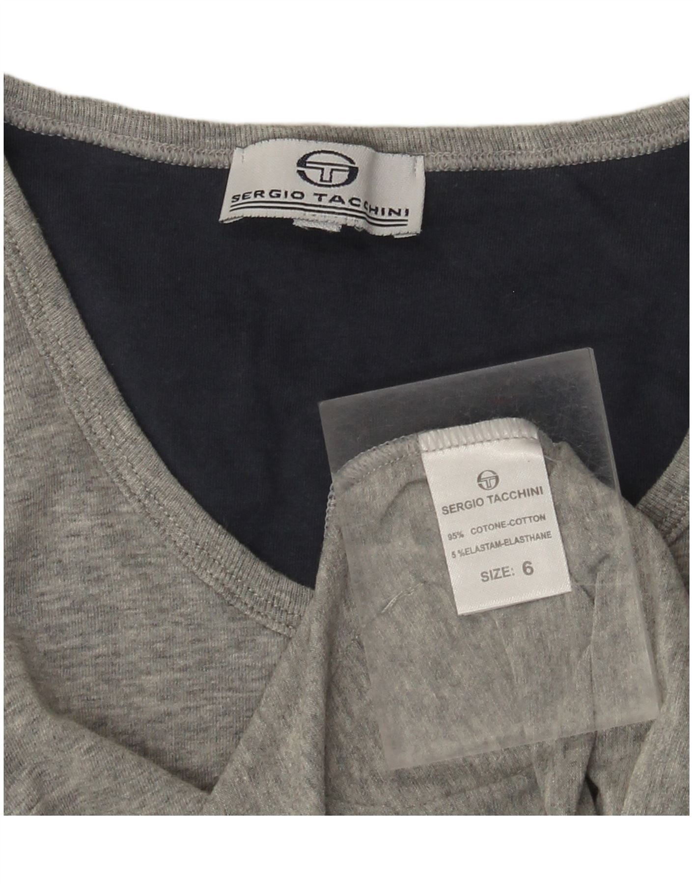 - Descriere AI: Acest tricou cu grafic pentru femei Sergio Tacchini este confectionat dintr-un amestec moale de jerseu din bumbac elastan. Oferă confort și elasticitate pentru purtare activă. Corpul gri are un decolteu rotund și mâneci scurte. Un model distinctiv de blocuri de culoare cu accente de albastru și alb pe un umăr. Potrivirea regulată asigură o mișcare ușoară. Un detaliu subtil de logo completează acest design sportiv.